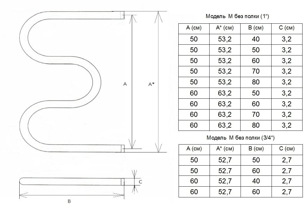 | Форма полотенцесушителя | М-образный |