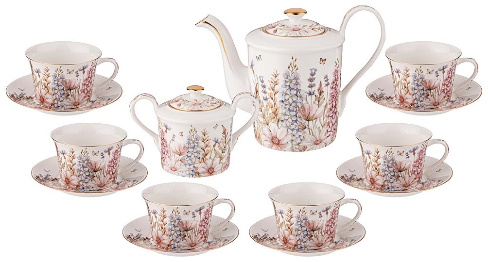 | Состав набора | блюдце - 6 шт.; заварочный чайник - 1 шт.; сахарница - 1 шт.; чашка - 6 шт. |