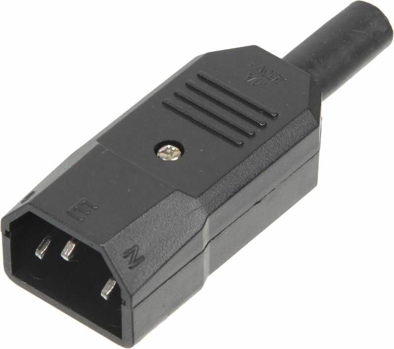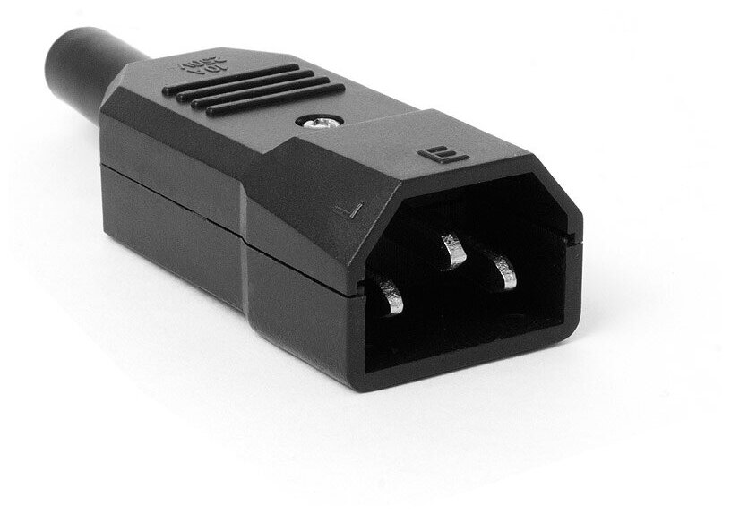 Разъем С14 предназначен для установки на электрические кабели для их подключения к оборудованию имеющему гнездо С13.