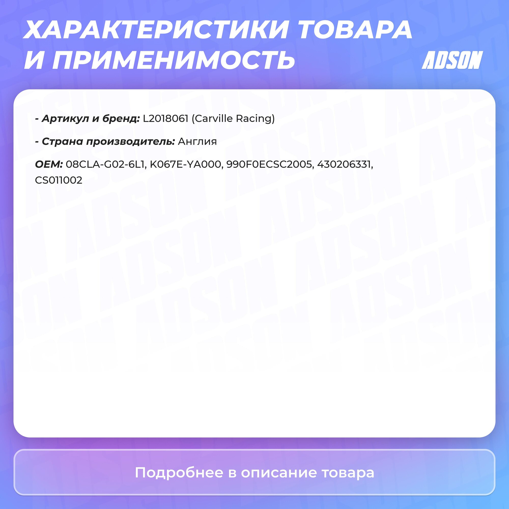 | Срок эксплуатации | В соответствии с инструкцией по эксплуатации автомобиля. Не менее 5 лет или 250 000 км |