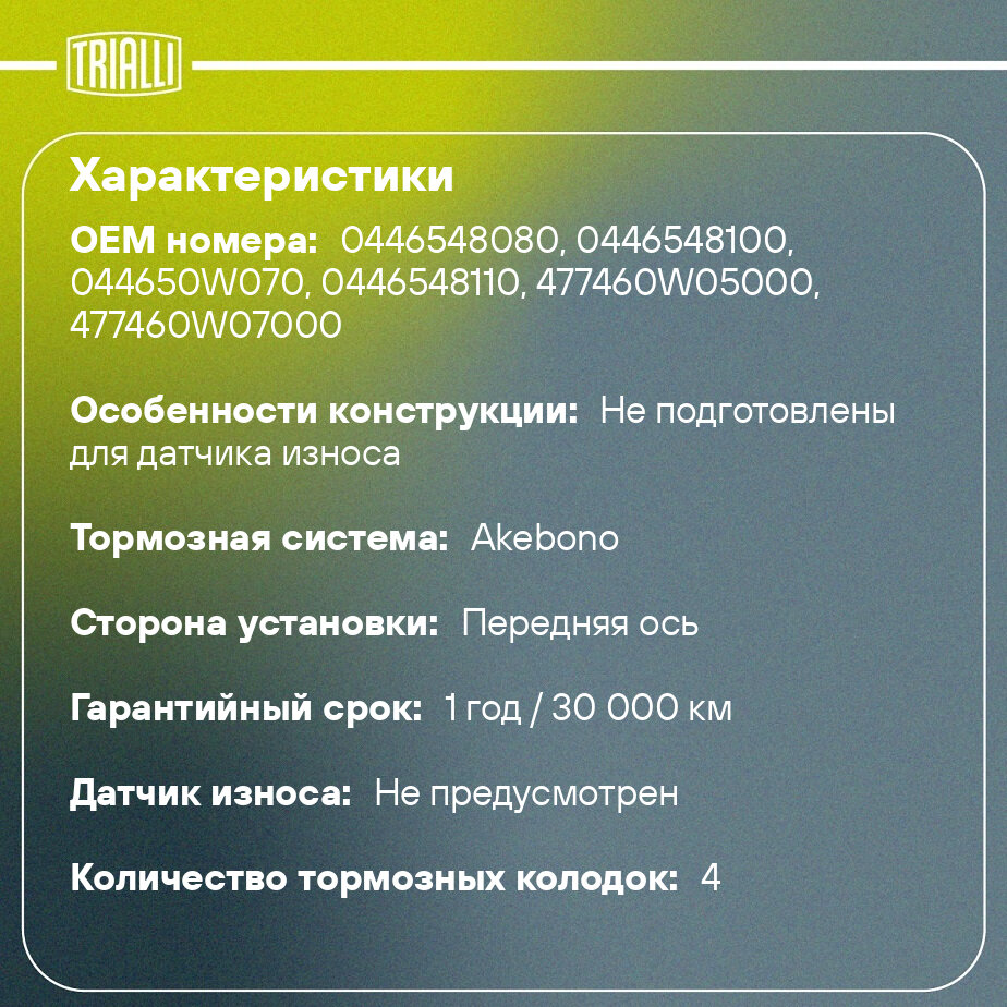 | Особенности конструкции | Не подготовлены для датчика износа |