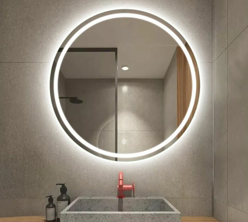 Зеркало 800х800 с LED-подсветкой. Модель сделана из стекла высшего качества M0 (влагостойкое, минимальные оптические искажения). LED-подсветка выдерживает до 50 тыс. часов работы в непрерывном режиме. Изделие оснащено сенсорным выключателем с функцией плавного диммирования, с запоминанием последнего значения. Короткие касания светящейся области включают/выключают подсветку, длительное касание меняет яркость свечения.