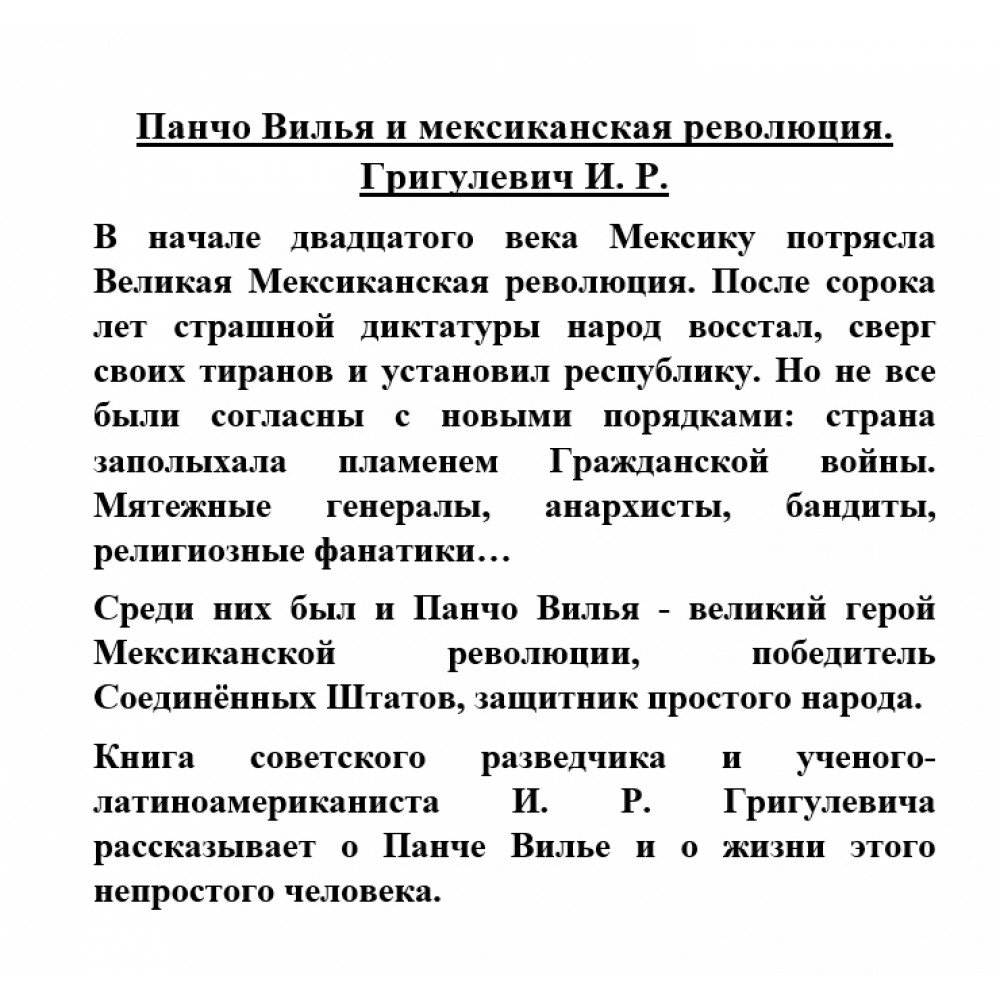 Книга советского разведчика и ученого-латиноамериканиста И. Р. Григулевича рассказывает о Панче Вилье и о жизни этого непростого человека.