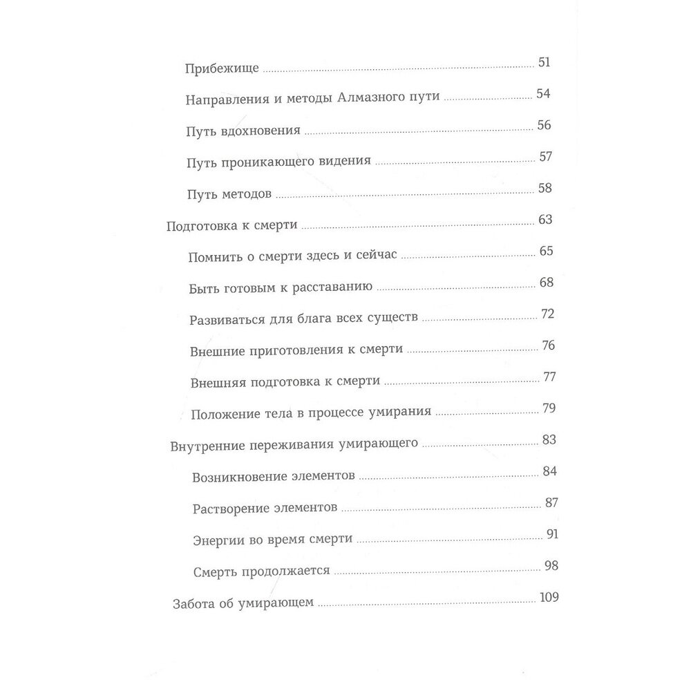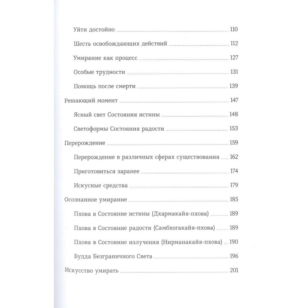 Лама Оле Нидал подробно и точно описывает переживания ума во время умирания, а также происходящее после смерти - в промежуточном состоянии до следующего рождения. Автор объясняет и то, как с помощью определенных медитаций пройти через эти процессы без страха. Буддийский подход позволяет не только лучше понять смерть, но и принять ее, а заодно успешнее функционировать в повседневной жизни.