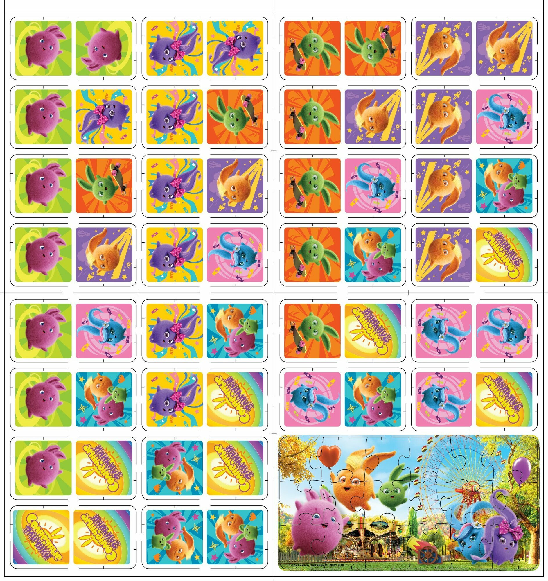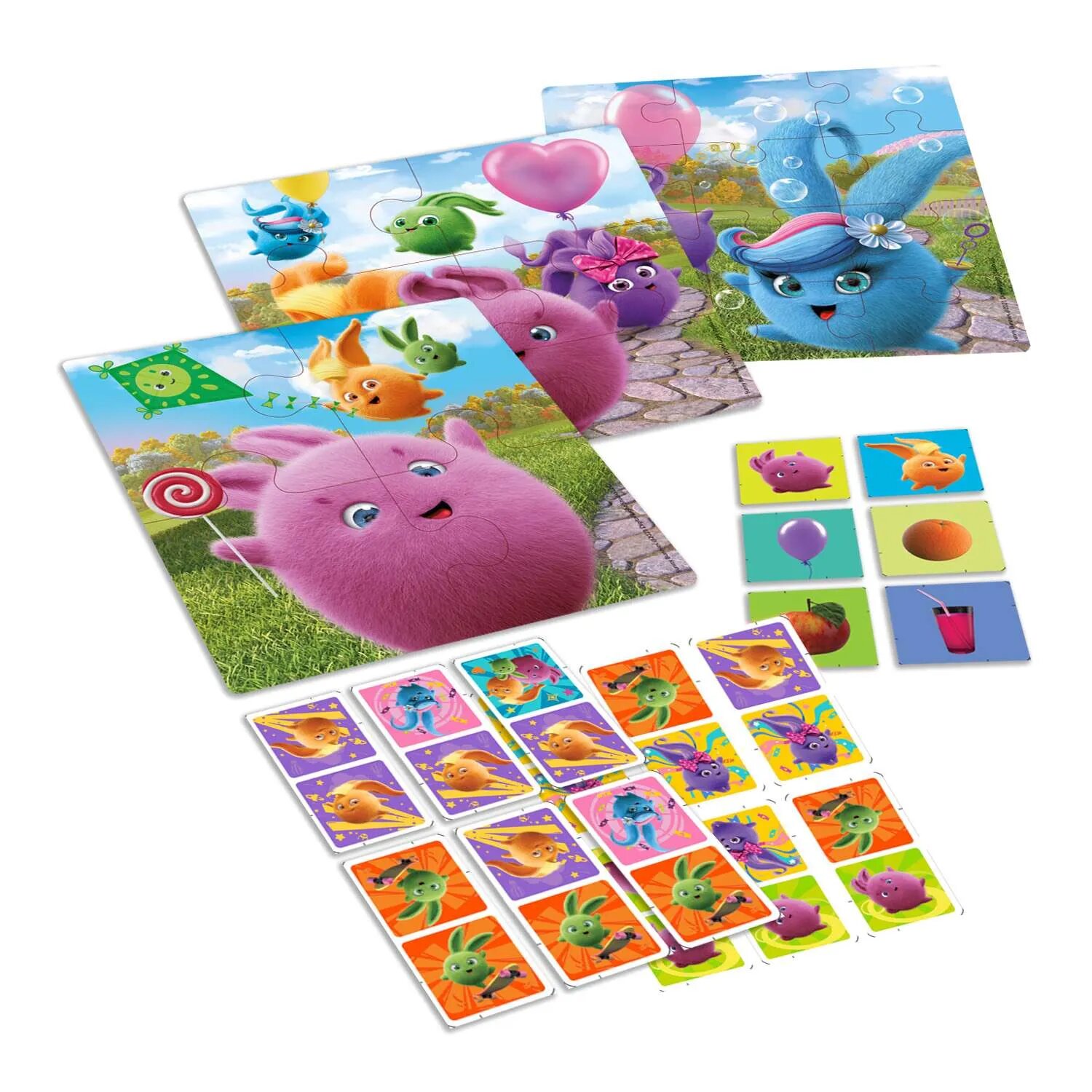 Комплектность: 4 пазла (4, 6, 9, 12 карточек с пазловым замком), домино (28 карточек), лото (30 карточек и 6 полей), мемо (30 карточек, 24, 18, 24 карточки с пазловым замком).
