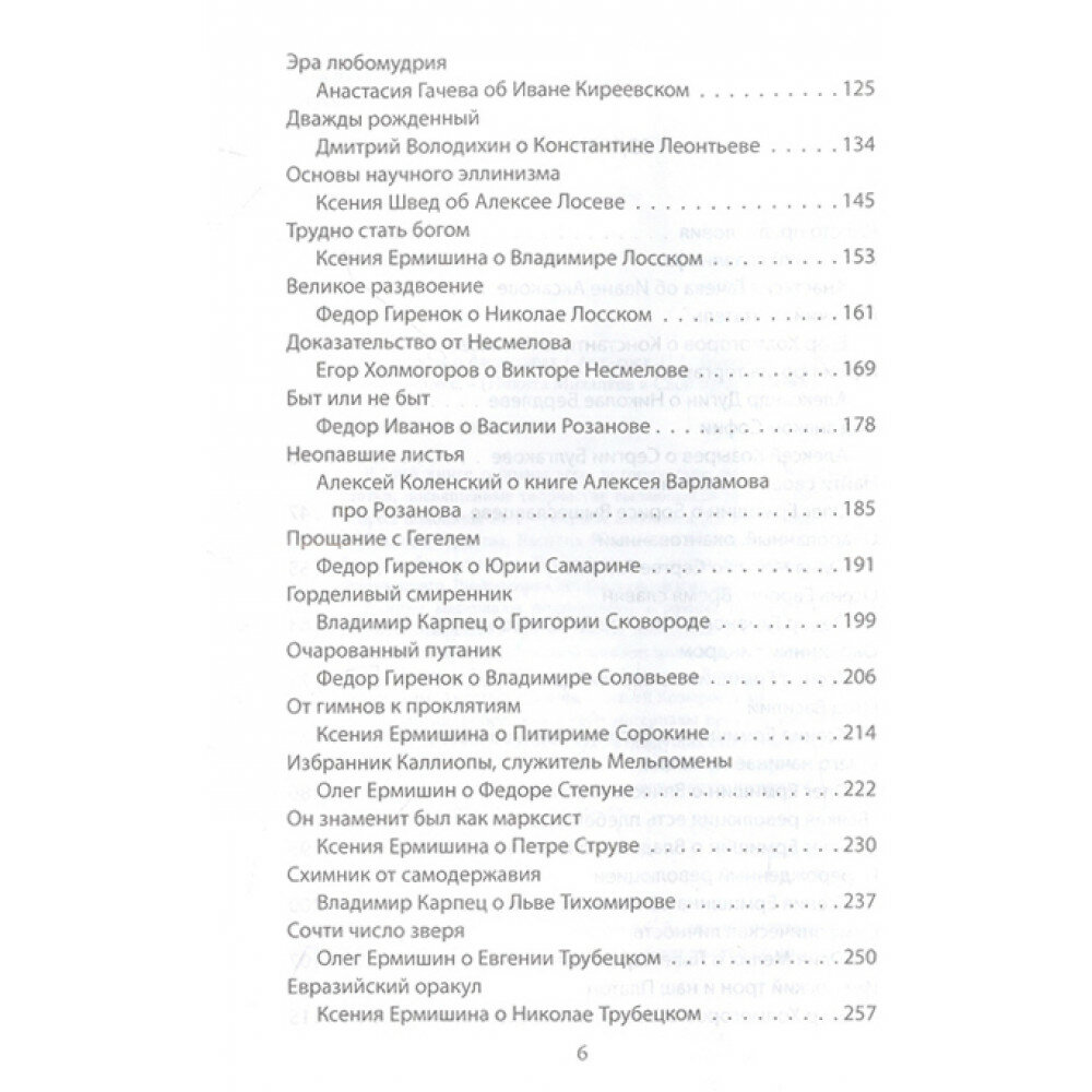 Самые интересные статьи написали Дугин, Холмогоров, Гиренок и покойный Карпец. Примечательна сама подача материала: интеллектуалы XXI века рассказывают о своих довольно далеких (в основном) предшественниках, причем рассказывают с воодушевлением. К тому же очень многие мысли, которые высказывали философы прошлого, актуальны и сегодня.