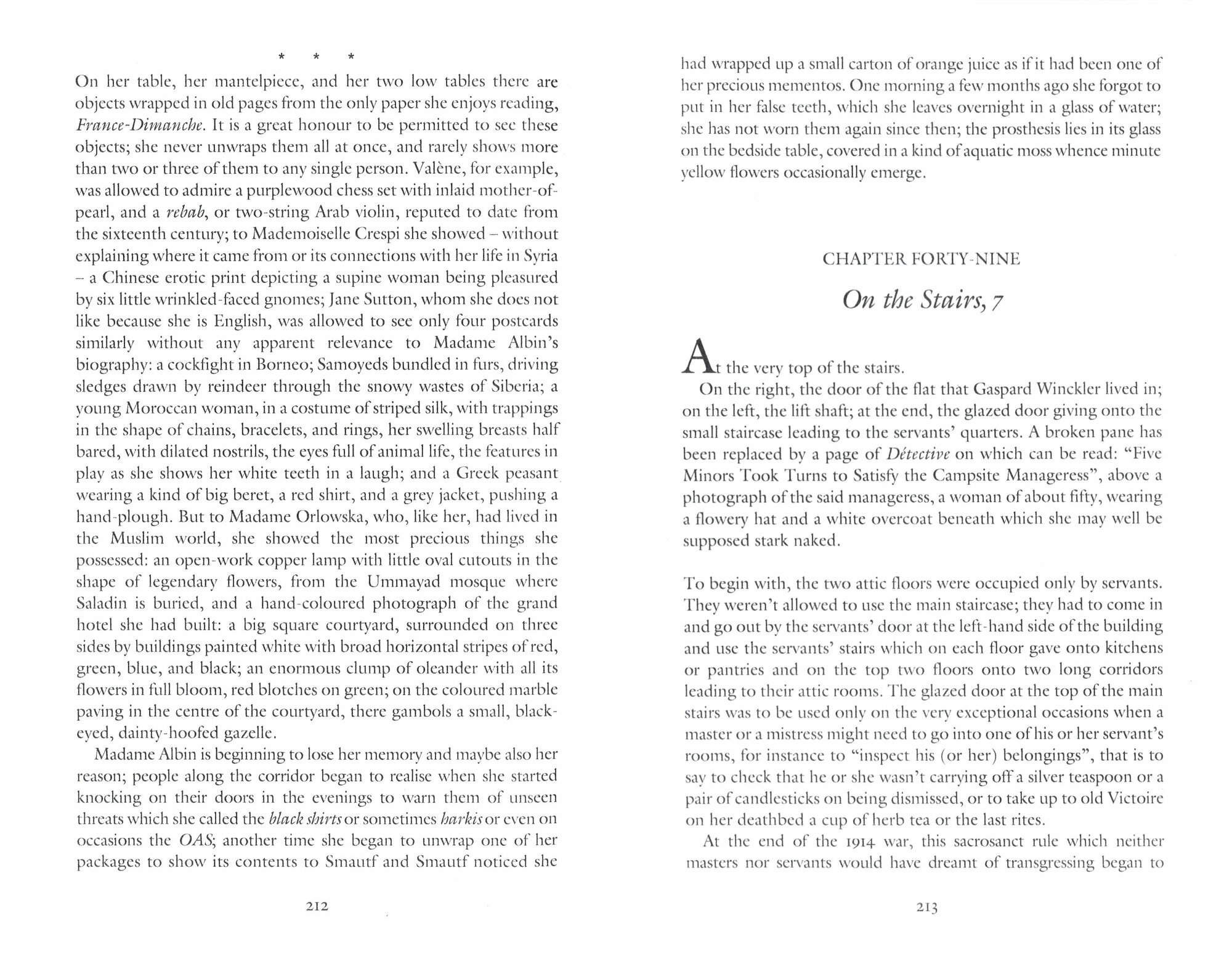In this ingenious book Perec creates an entire microcosm in a Paris apartment block. Serge Valene wants to make an elaborate painting of the building he has made his home for the last sixty years. As he plans his picture, he contemplates the lives of all the people he has ever known there. Chapter by chapter, the narrative moves around the building revealing a marvellously diverse cast of characters in a series of every more unlikely tales, which range from an avenging murderer to an eccentric English millionaire who has devised the ultimate pastime...