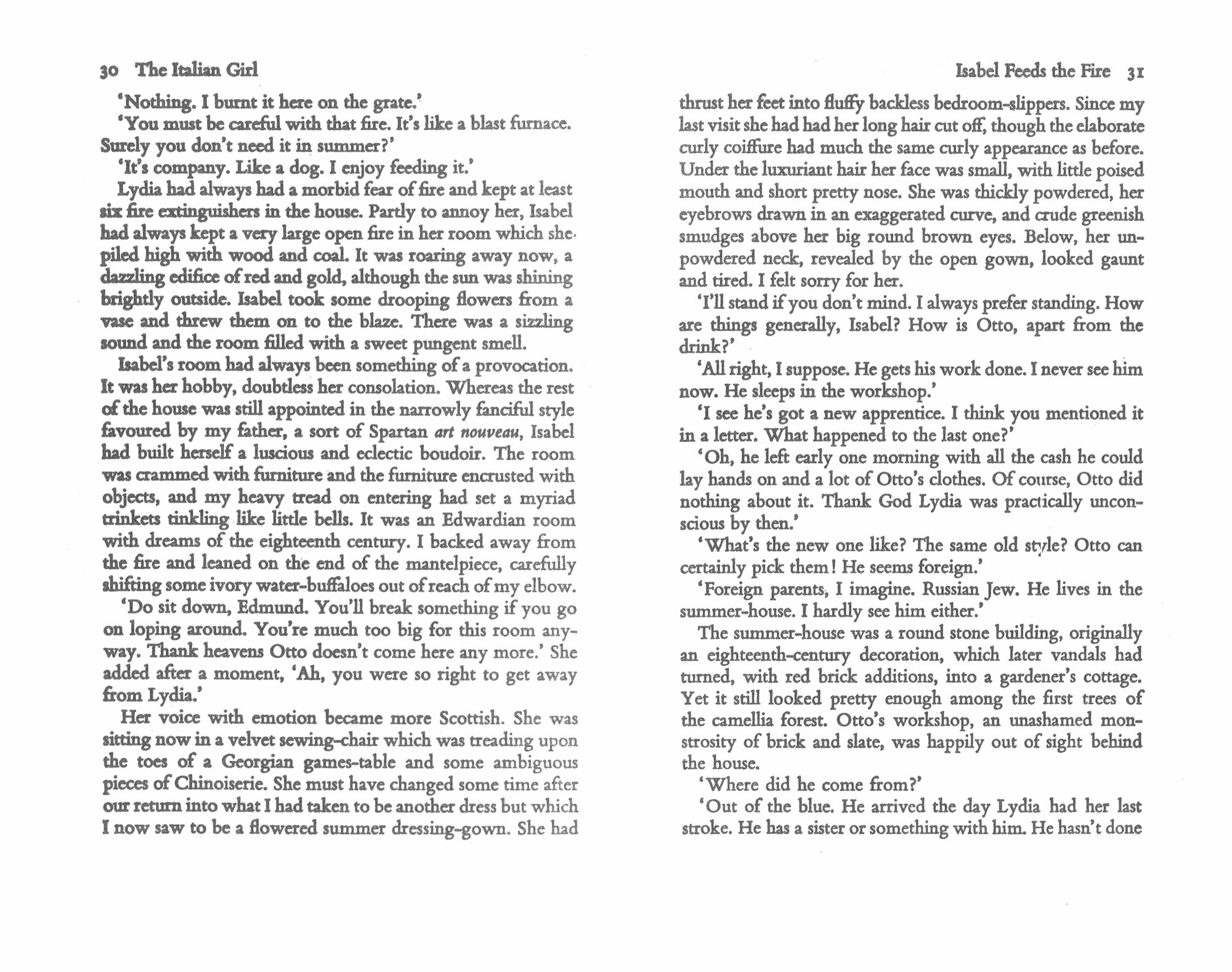 Edmund has escaped from his family into a lonely life. Returning for his mother's funeral he finds himself involved in the old, awful problems, together with some new ones. One by one his relatives reveal their secrets to a reluctant Edmund: illicit affairs, hidden passions, shameful scandals. And the heart of all, there is, as always, the family's loyal servant, the Italian girl.