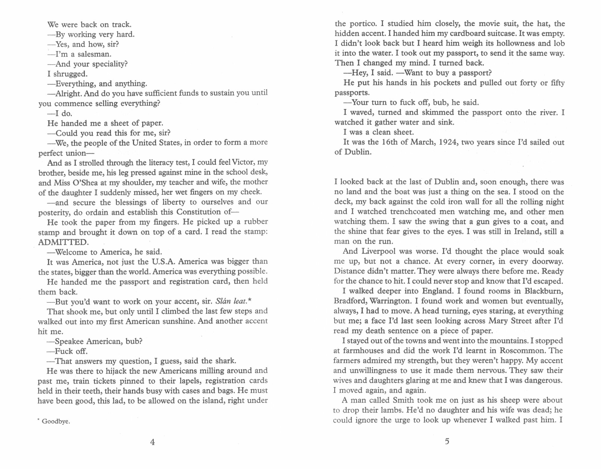 Henry Smart, on the run from Dublin, falls on his feet. He is a handsome man with a sandwich board, behind which he stashes hooch for the speakeasies of the Lower East Side. He catches the attention of the mobsters who run the district and soon there are eyes on his back and men in the shadows. It is time to leave, for another America...