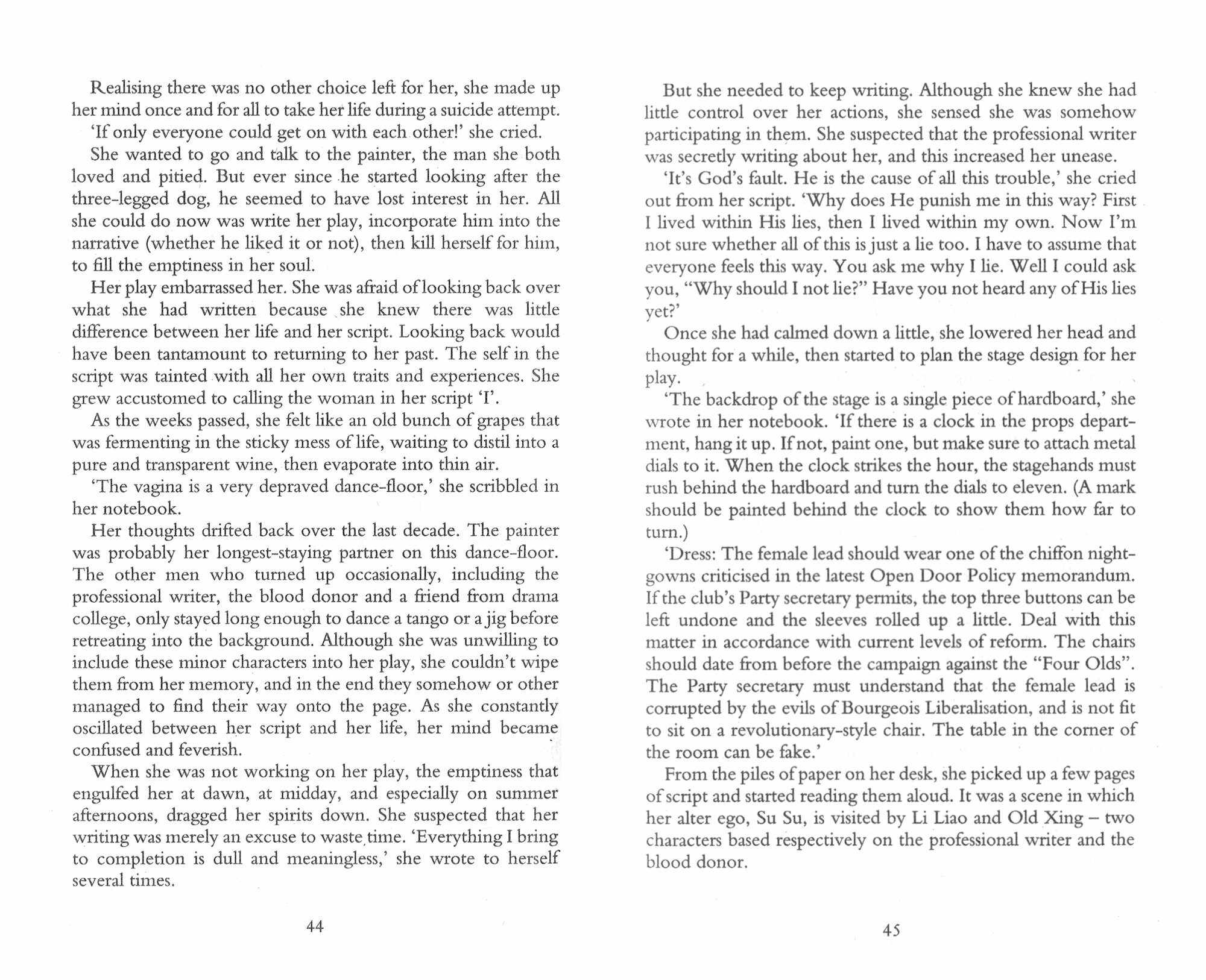 Every week, a writer of political propaganda and a professional blood donor meet for dinner. They are unlikely friends - one of them tortured by his 'art', the other fat and wealthy from the earthy business of providing spare blood for the citizens of China.