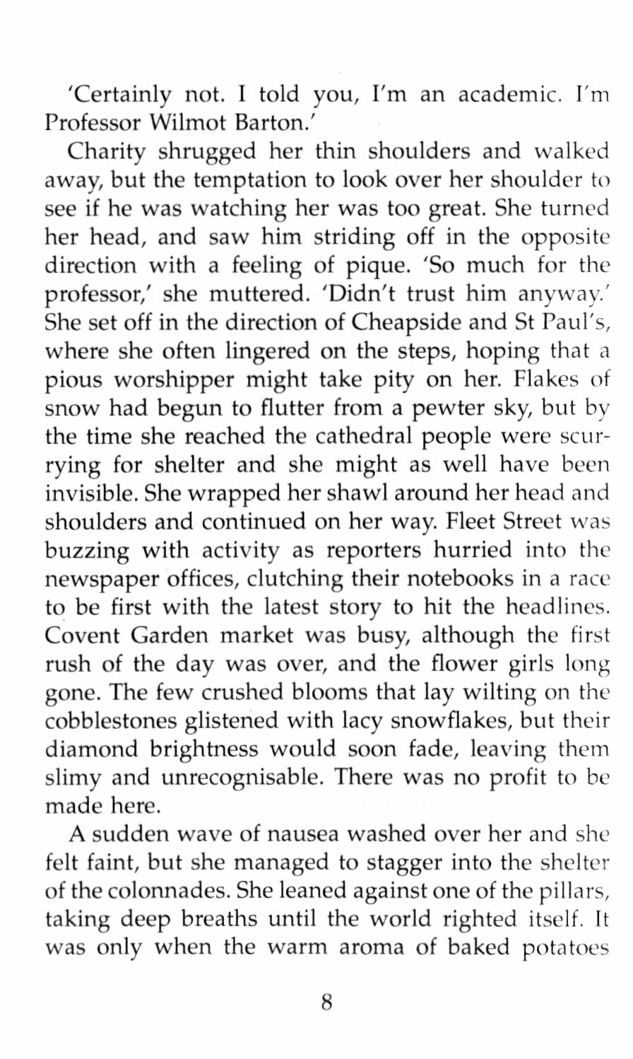 But Jethro dies unexpectedly, and Charity is faced with eviction when the rent is raised by the unscrupulous landlord. Must Charity give up her dream of running the bookshop herself, and worse, be forced to return to the streets...?