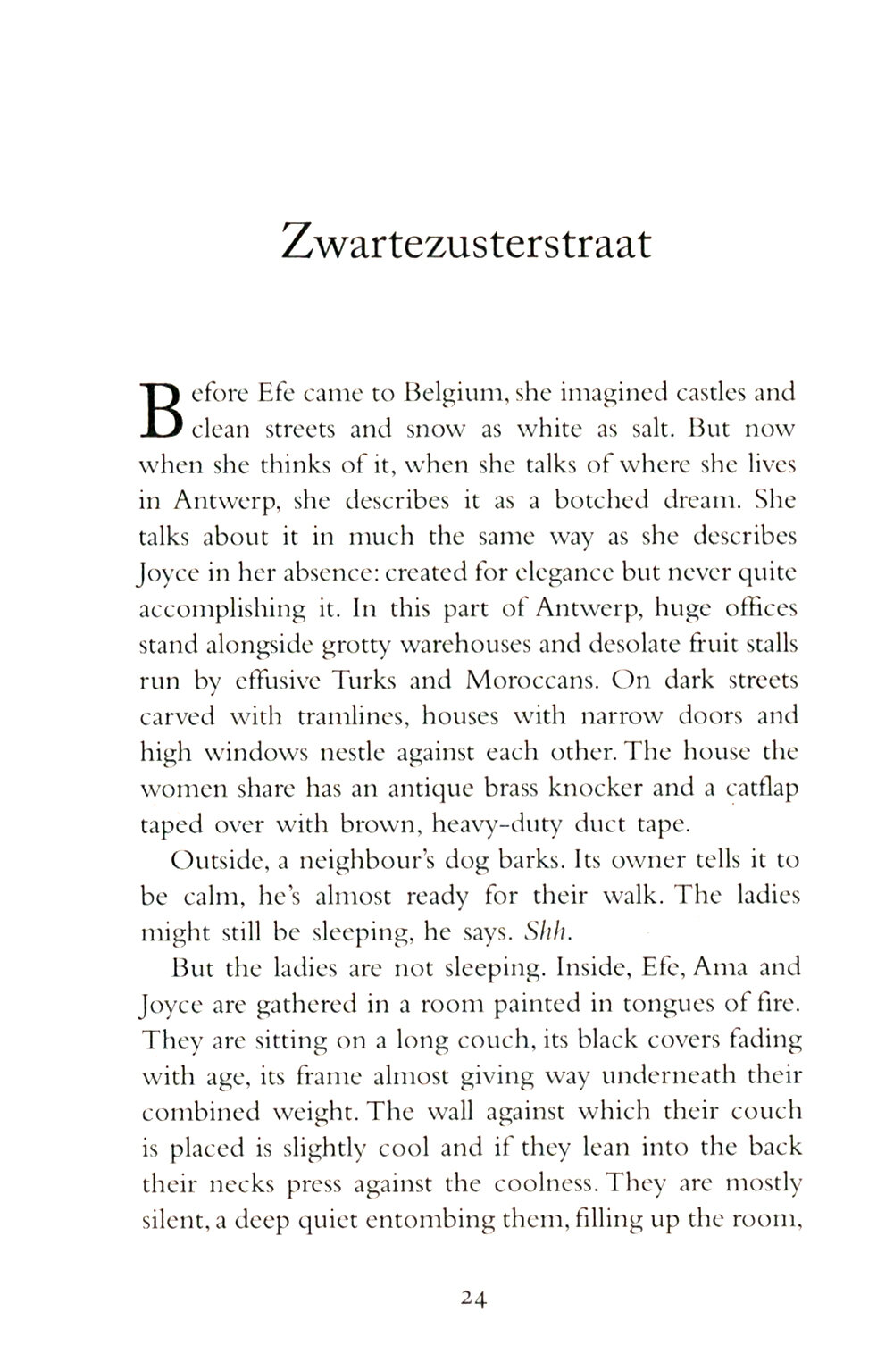 Drawn together by tragedy, the remaining three women - Joyce, a great beauty whose life has been destroyed by war; Ama, whose dark moods manifest a past injustice; Efe, whose efforts to earn her keep are motivated by a particular zeal - slowly begin to share their stories. They are stories of terror, of displacement, of love, and of a sinister man called Dele.