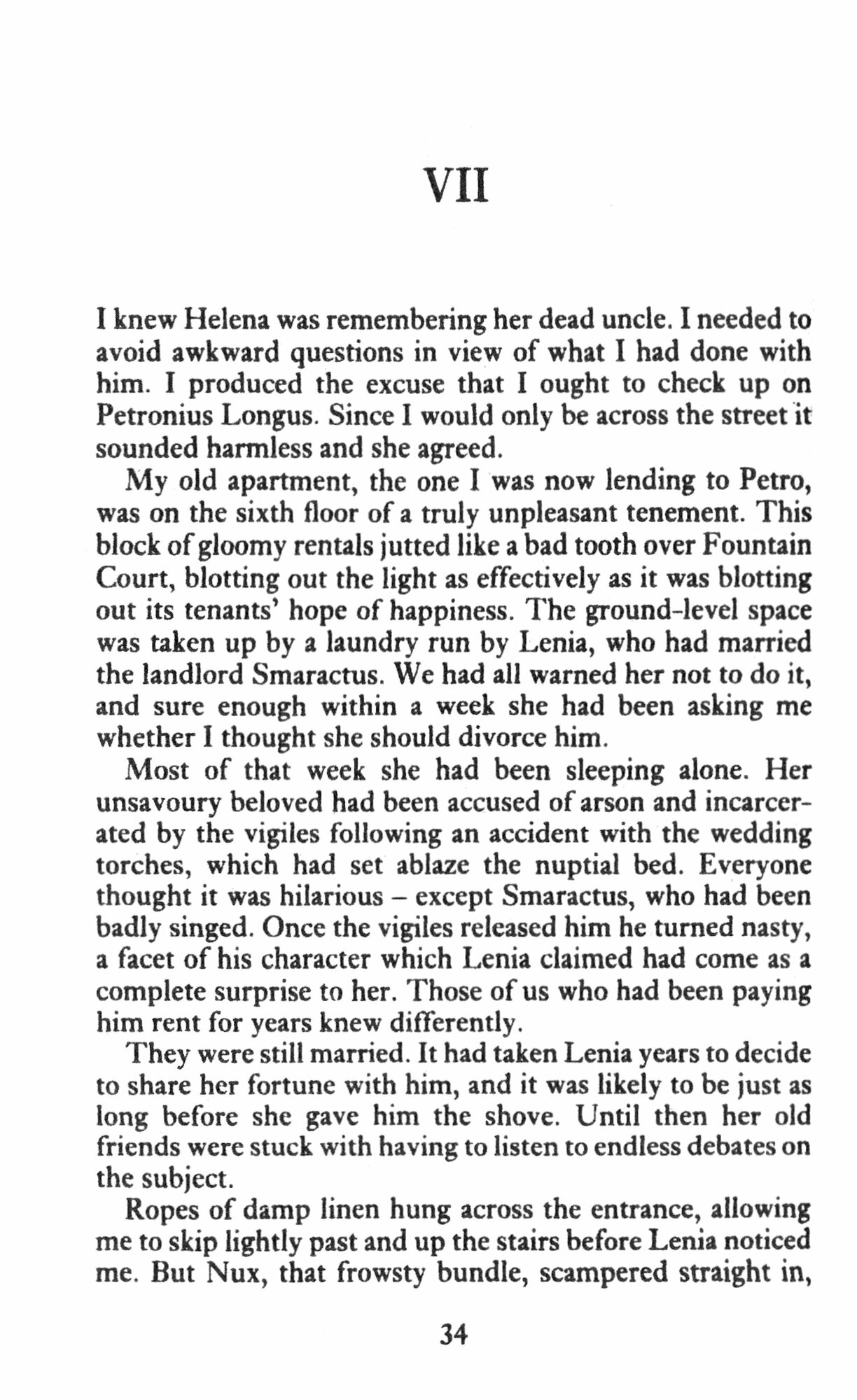 Public panic overcomes official indifference, and the Aventine partners are commissioned to investigate. Women are being abducted during festivals, with the next Games only days away.