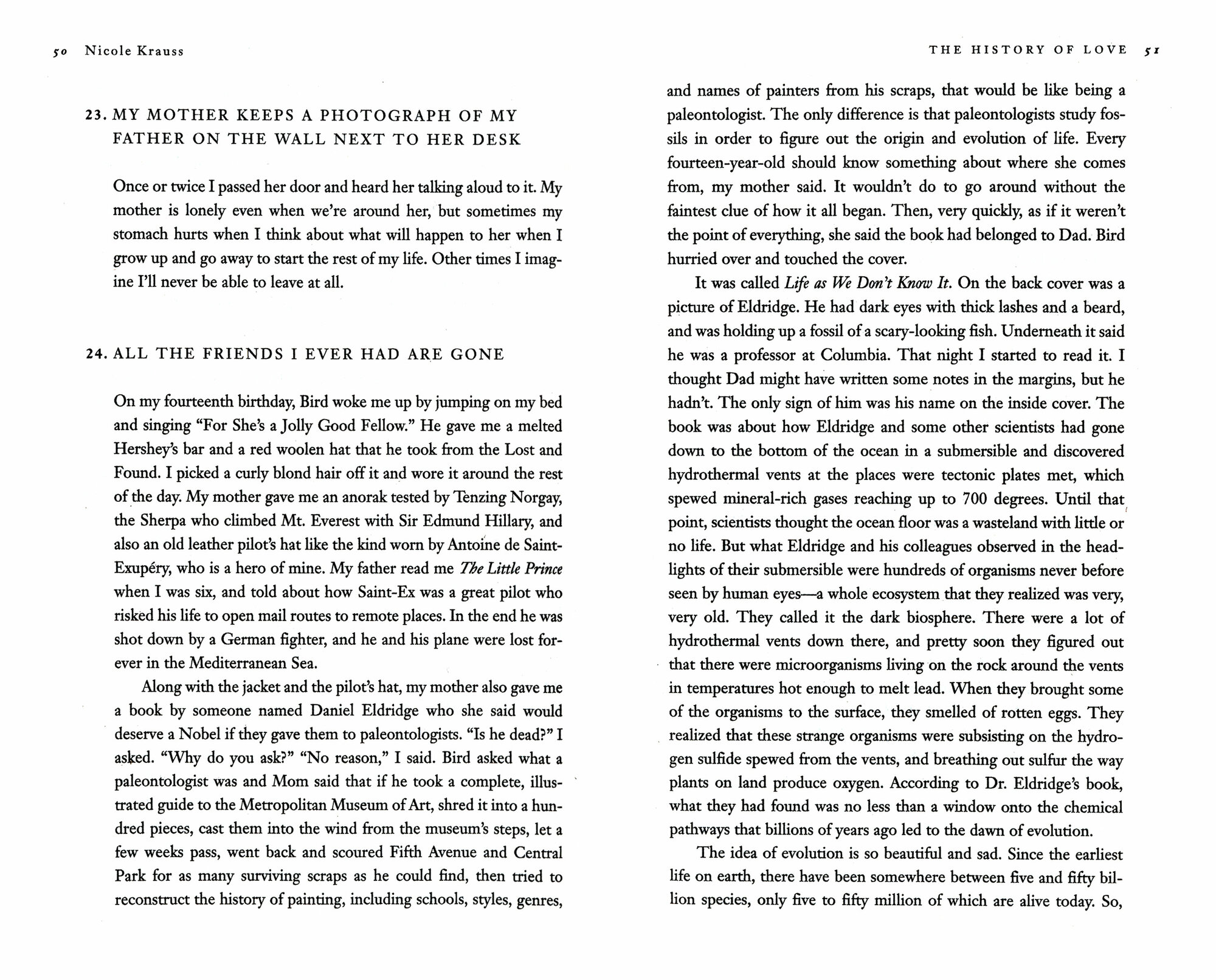 'When I was born my mother named me after every girl in a book my father gave her called The History of Love. . . '
