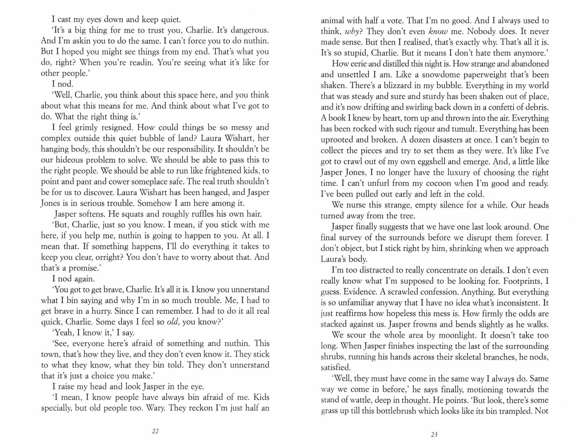 His visitor is Jasper Jones. Rebellious, mixed-race and solitary, Jasper is intriguing. And he needs Charlie’s help. In the dead of night, the boys steal through town, and Charlie learns of Jasper’s horrible discovery.