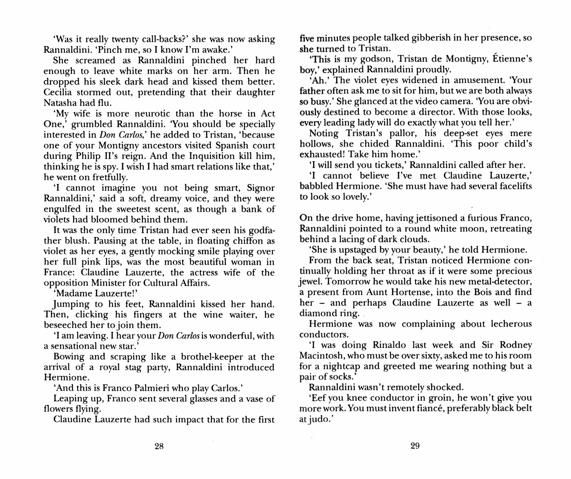 Sir Robert Rannaldini, the most successful but detested conductor in the world, had two ambitions: to seduce his ravishing nineteen-year-old stepdaughter Tabitha Campbell-Black, and to put his mark on musical history by making the definitive film of Verdi's darkest opera, Don Carlos.