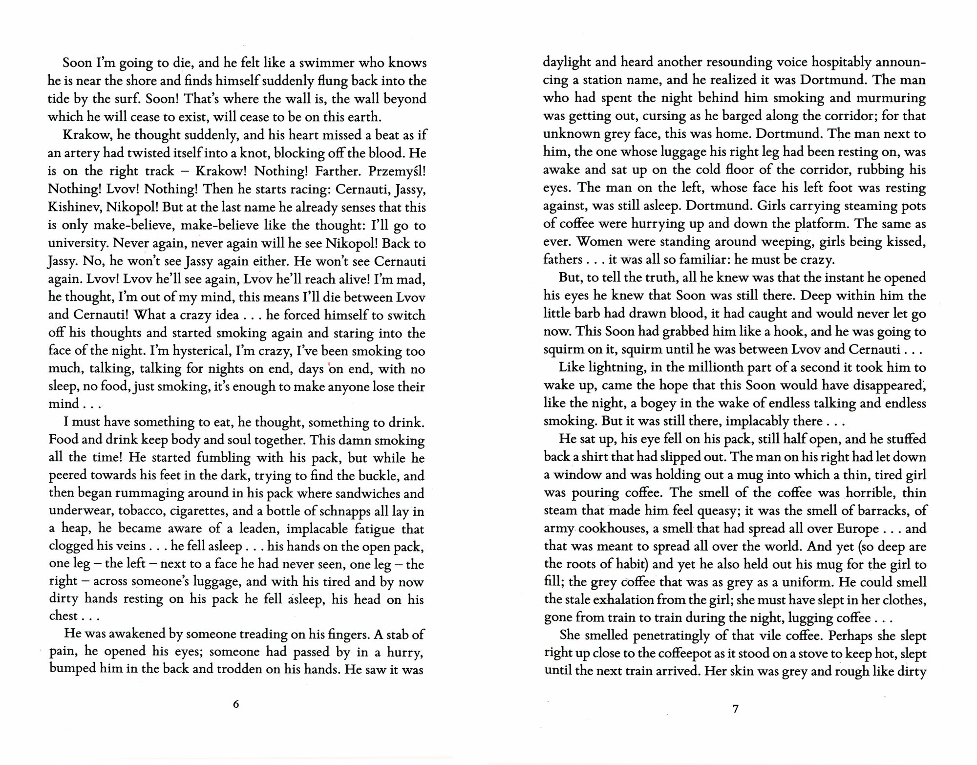 Twenty-four-year-old Andreas, a disillusioned German soldier, is travelling on a troop train to the Eastern Front when he has an awful premonition that he will die in exactly five days. As he hurtles towards his death, he reflects on the chaos around him - the naive soldiers, the painfully thin girl who pours his coffee, the ruined countryside - with sudden, heart-breaking poignancy. Arriving in Poland the night before he is certain he will die, he meets Olina, a beautiful prostitute, and together they attempt to escape his fate...