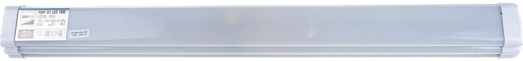 Светильник светодиодный пылевлагозащищённый Jazzway PWP-OS 600 предназначен для освещения промышленных, производственных и сельскохозяйственных комплексов; складских помещений, автостоянок, гаражей, подвальных помещений, подъездов, лестниц, коридоров, банных комплексов и т.д. Изготовлен из поликарбоната. Светильник обладает огромным расчётным сроком службы светодиодов - 25000 ч.