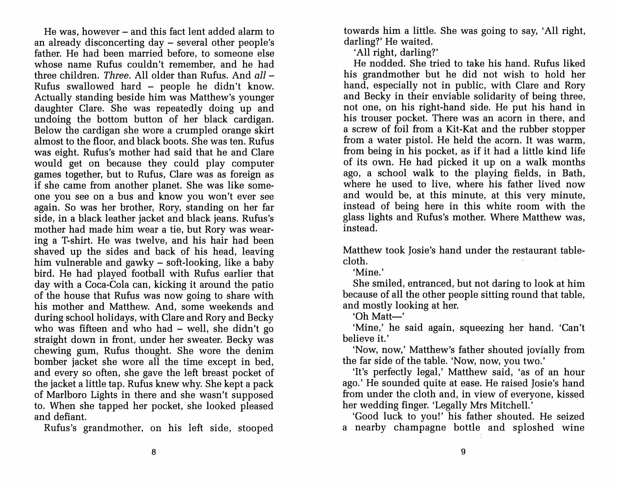 For eight-year-old Rufus life has become complicated. His parents, Josie and Tom, have divorced and are setting off on separate paths. But now, other people have had to become involved, like his mother's new husband Matthew and his father's new friend Elizabeth. What's even worse is that there are other children too, Matthew's three teenagers, who have been conditioned by their mother Nadine to hate his mother Josie.