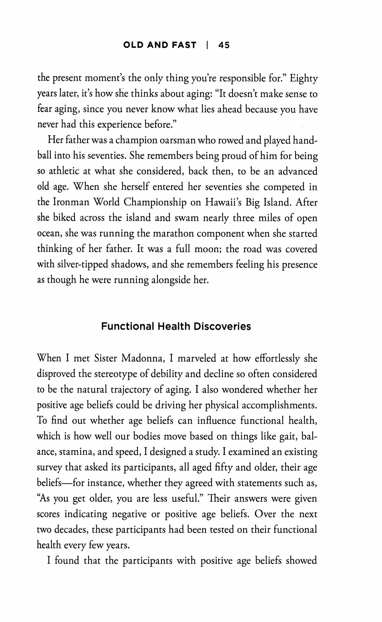 In Breaking the Age Code, Dr Levy draws on pioneering research to offer stunning revelations about the mind-body connection. She demonstrates that many aspects of ageing we consider to be natural, such as memory loss, hearing decline and cardiovascular events, are in fact influenced by our own negative biases, often informed by cultural ageism. She tackles head on how we can shift these outdated ideas at a societal level and what we can do to help ourselves.