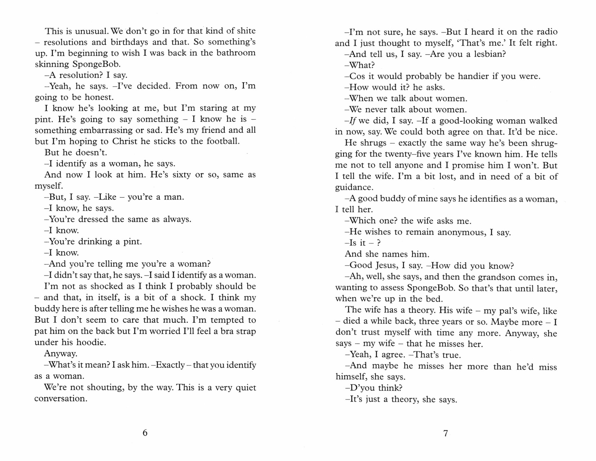 Charlie is a middle-aged Dubliner with an indefatigable wife, an exasperated daughter, a drinking buddy who’s realised that he’s been a woman all along …
