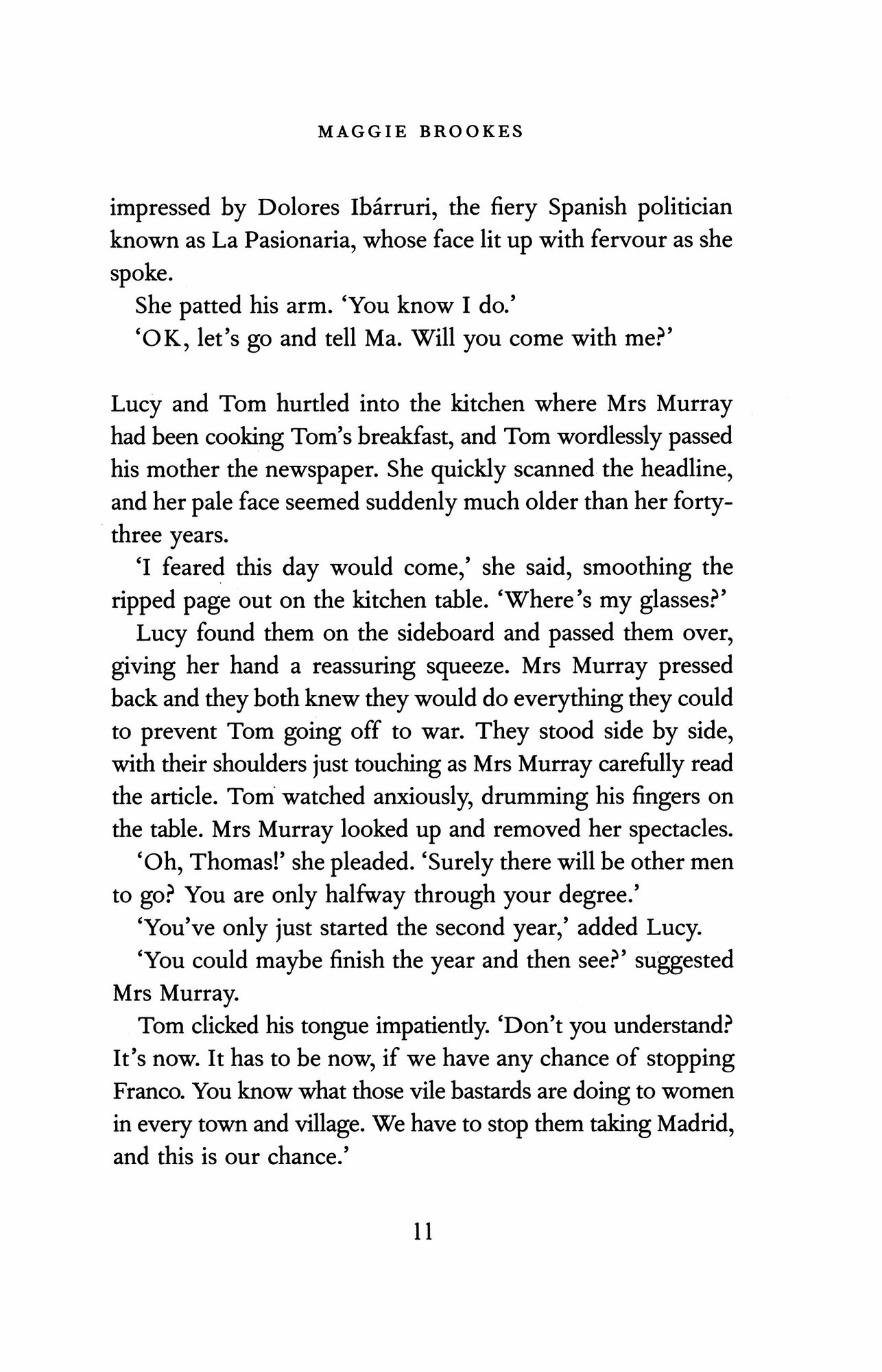 But her life is turned upside down when Tom decides he must travel to Spain to fight in the bloody Spanish Civil War. He is quickly followed by Jamie who, much to Lucy's despair, is supporting General Franco.