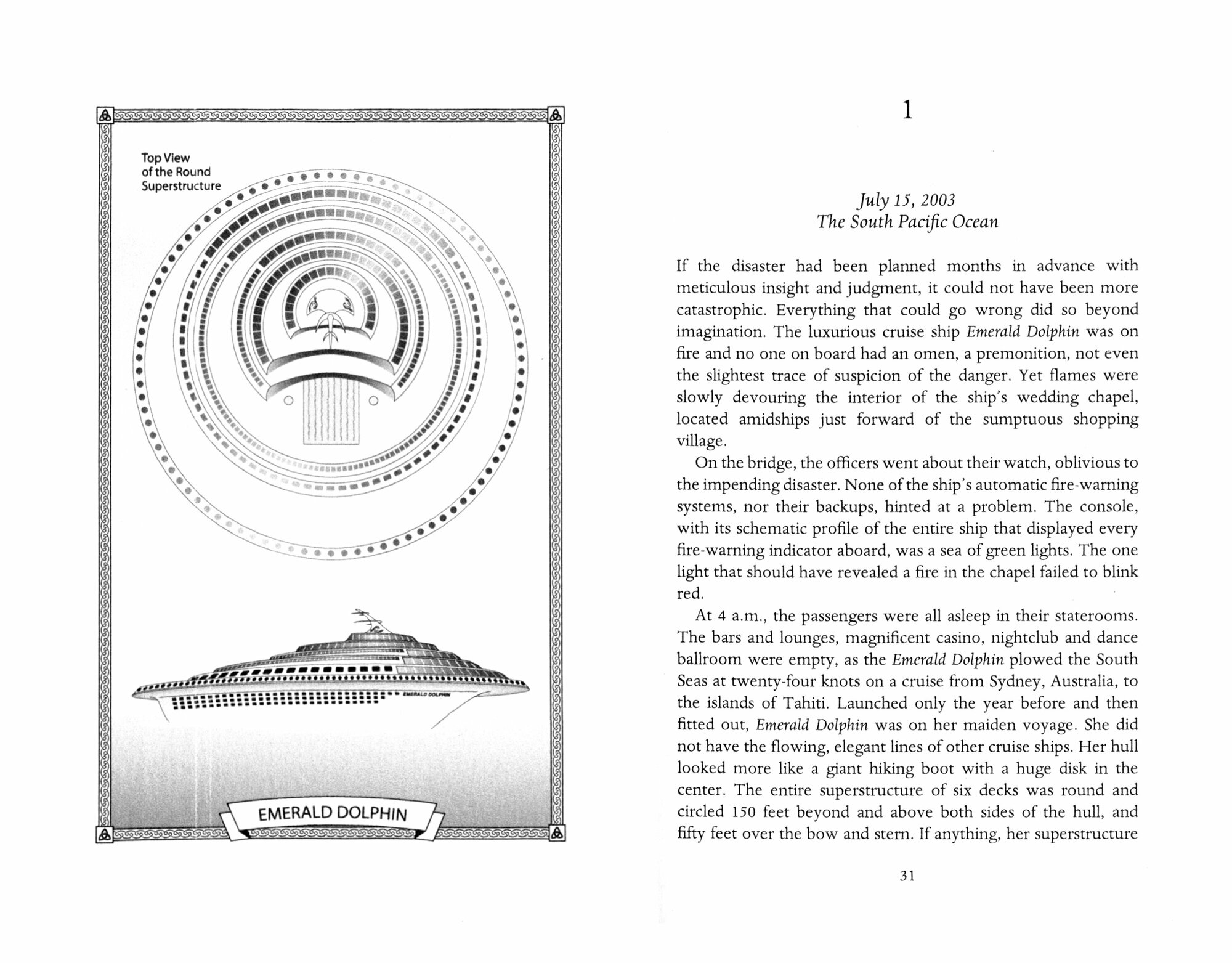 When the luxury cruise lined Emerald Dolphin - powered by a revolutionary new propulsion system - becomes a raging inferno and sinks mysteriously, it is lucky that NUMA special projects director Dirk Pitt is on hand to rescue the passengers and investigate the tragedy.