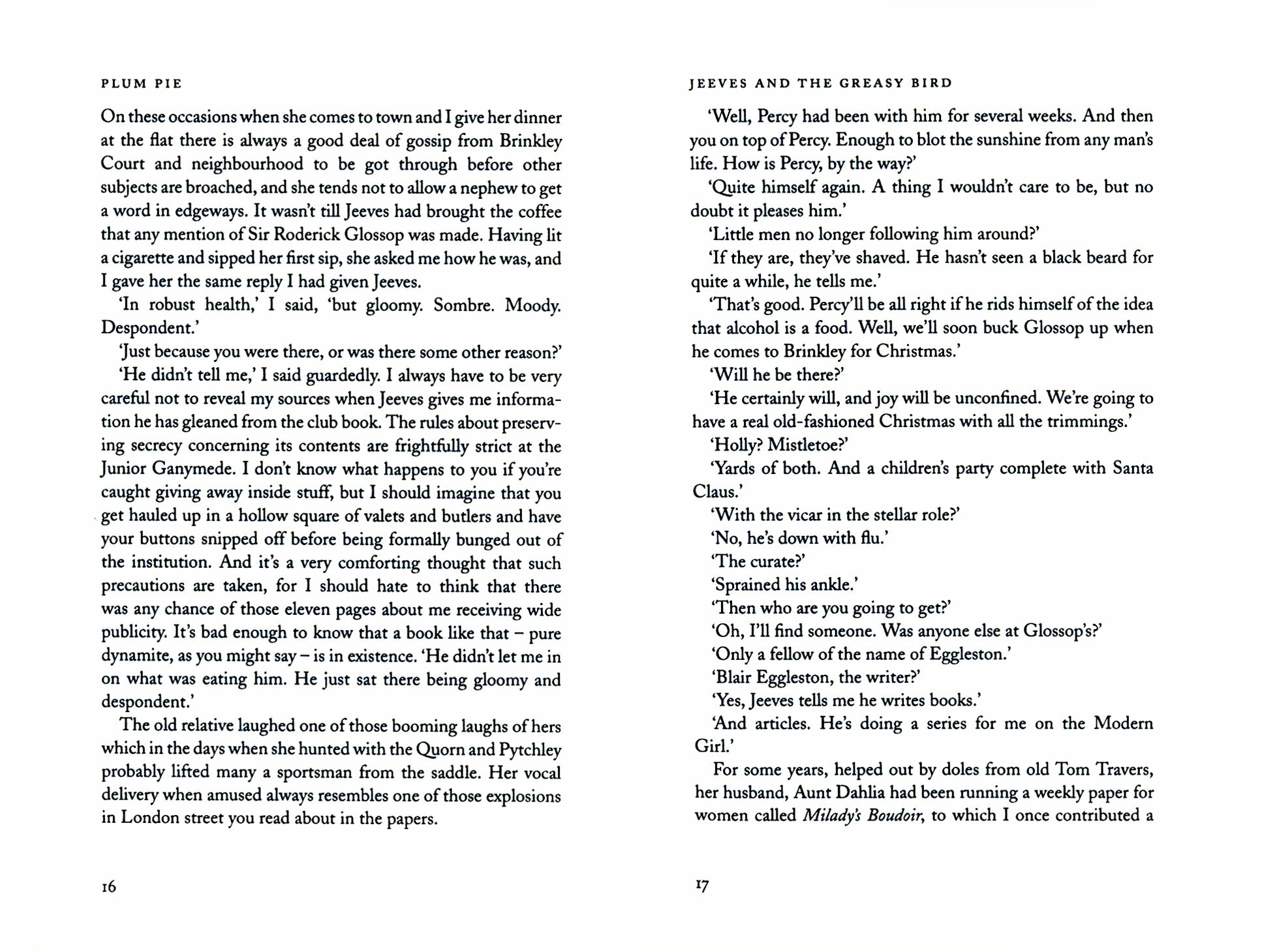 This collection of stories features familiar Wodehouse characters includes Jeeves and Wooster, Ukridge and his fearsome Aunt Julia, Bingo Little and his wife, romantic novelist Rosie M. Banks, twin Mulliner brothers George (the screenwriter) and Alfred (the conjuror), Galahad Threepwood, dotty Lord Emsworth and his younger son Freddie, the dog-biscuit salesman. In between stories, their creator explores some of the more extraordinary items in the American news of his day.
