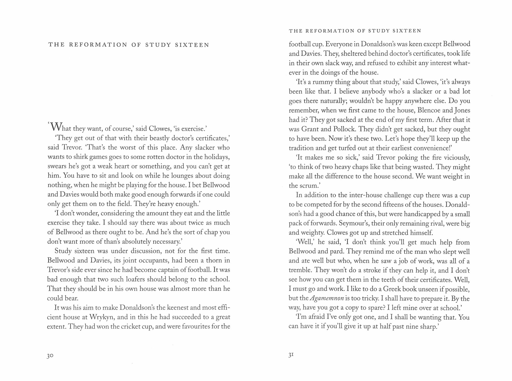 The best of them display the author’s love of games and knack for neat plotting. In one, a resourceful teenaged heroine helps a truant schoolboy cricketer by marooning his credulous schoolmaster at the top of a church tower until the match is over. Another describes a boy escaping from the scene of his crime by a passing car, only to be caught out by a last-minute revelation. Several Sherlock Holmes parodies read as what they are – high-spirited experiments – but the longer stories delve deeper into character: together, they recreate a vanished world of school shops, fagging, Latin prep and hearty teas.