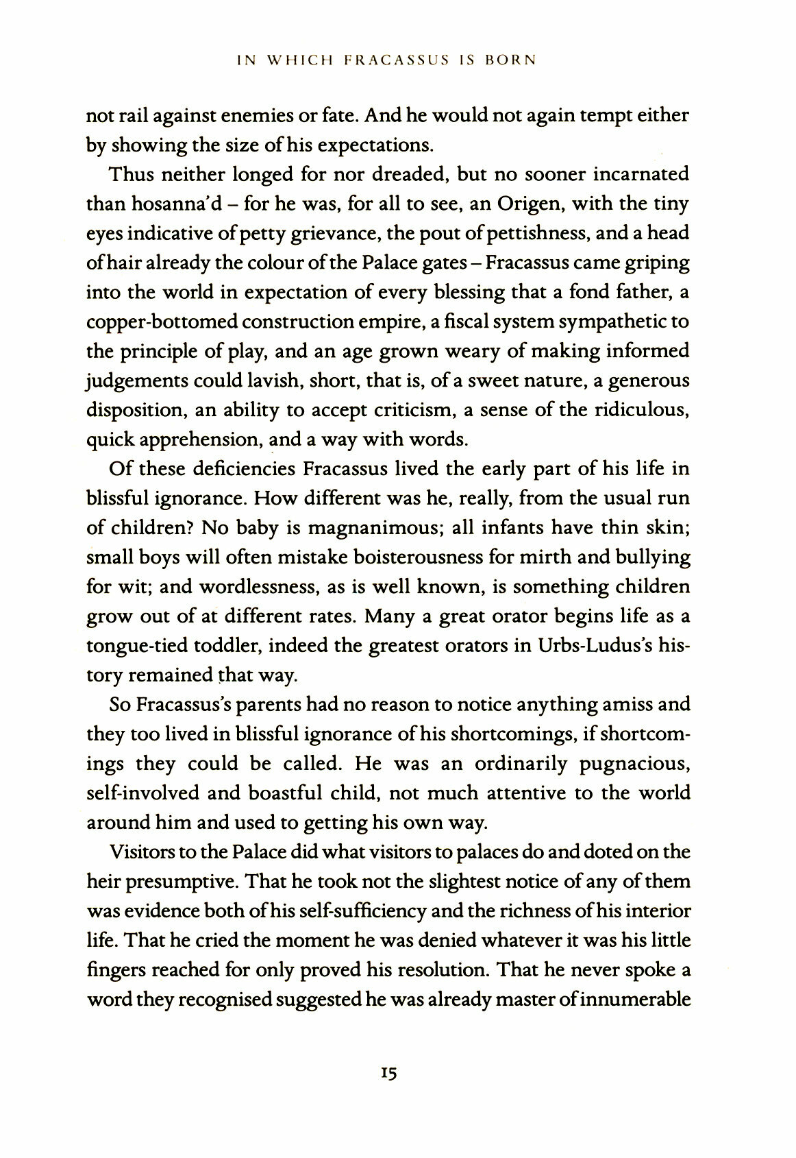 Pussy is the story of Prince Fracassus, heir presumptive to the Duchy of Origen, famed for its golden-gated skyscrapers and casinos, who passes his boyhood watching reality shows on TV, imagining himself to be the Roman Emperor Nero, and fantasizing about hookers. He is idle, boastful, thin-skinned and egotistic; has no manners, no curiosity, no knowledge, no idea and no words in which to express them. Could he, in that case, be the very leader to make the country great again?