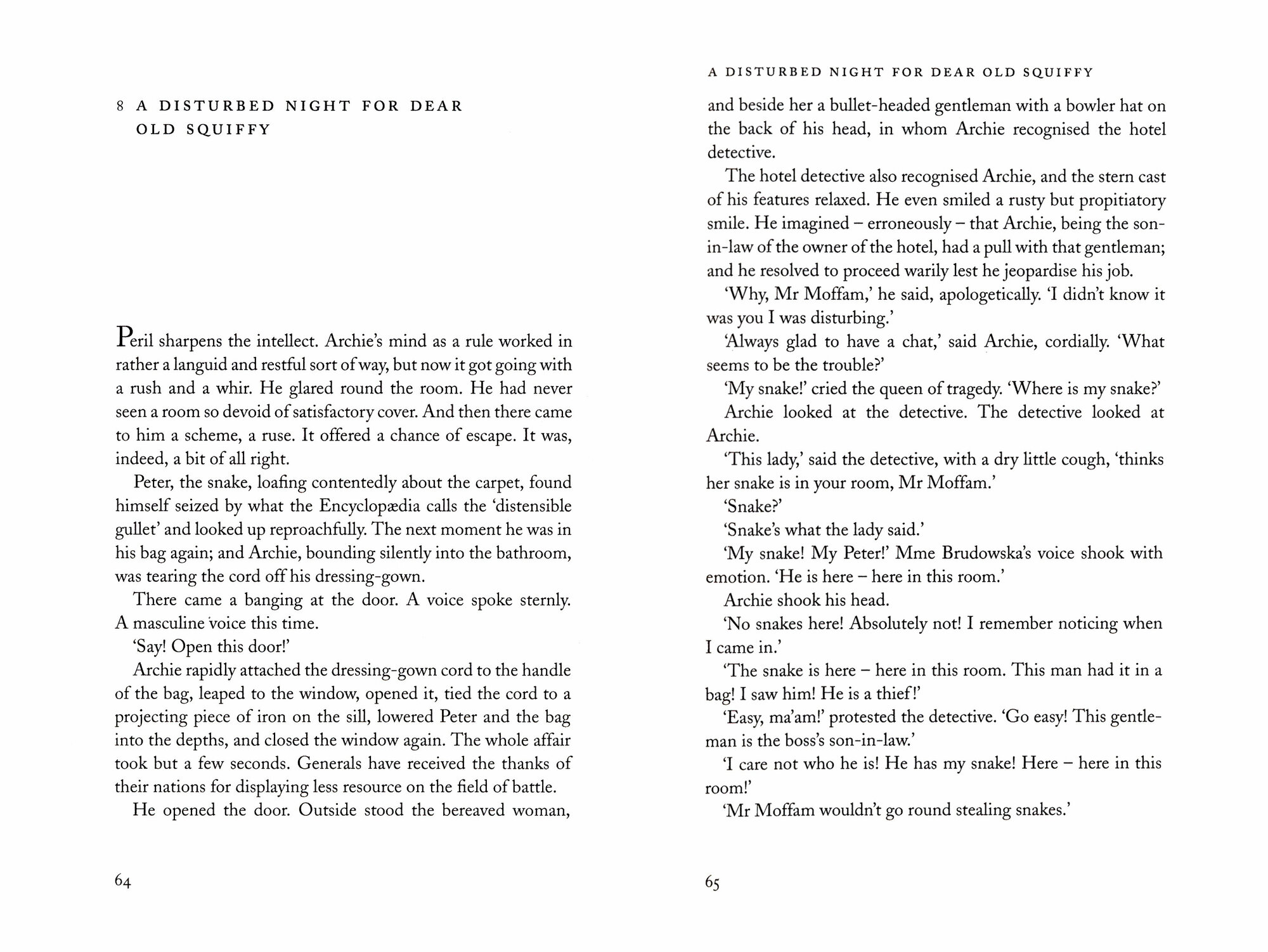 When an impoverished but charming Englishman, Archie Moffam, marries the daughter of tough American millionaire Daniel Brewster, the stage is set for a characteristic Wodehouse encounter between characters, cultures and nations. Much of the action takes place in Brewster’s New York hotel where Archie eventually emerges triumphant, but only after a series of comic misadventures involving a snake, a waiter, a pie-eater, a song-writer, a tearful union leader and a volcanic cabaret singer.