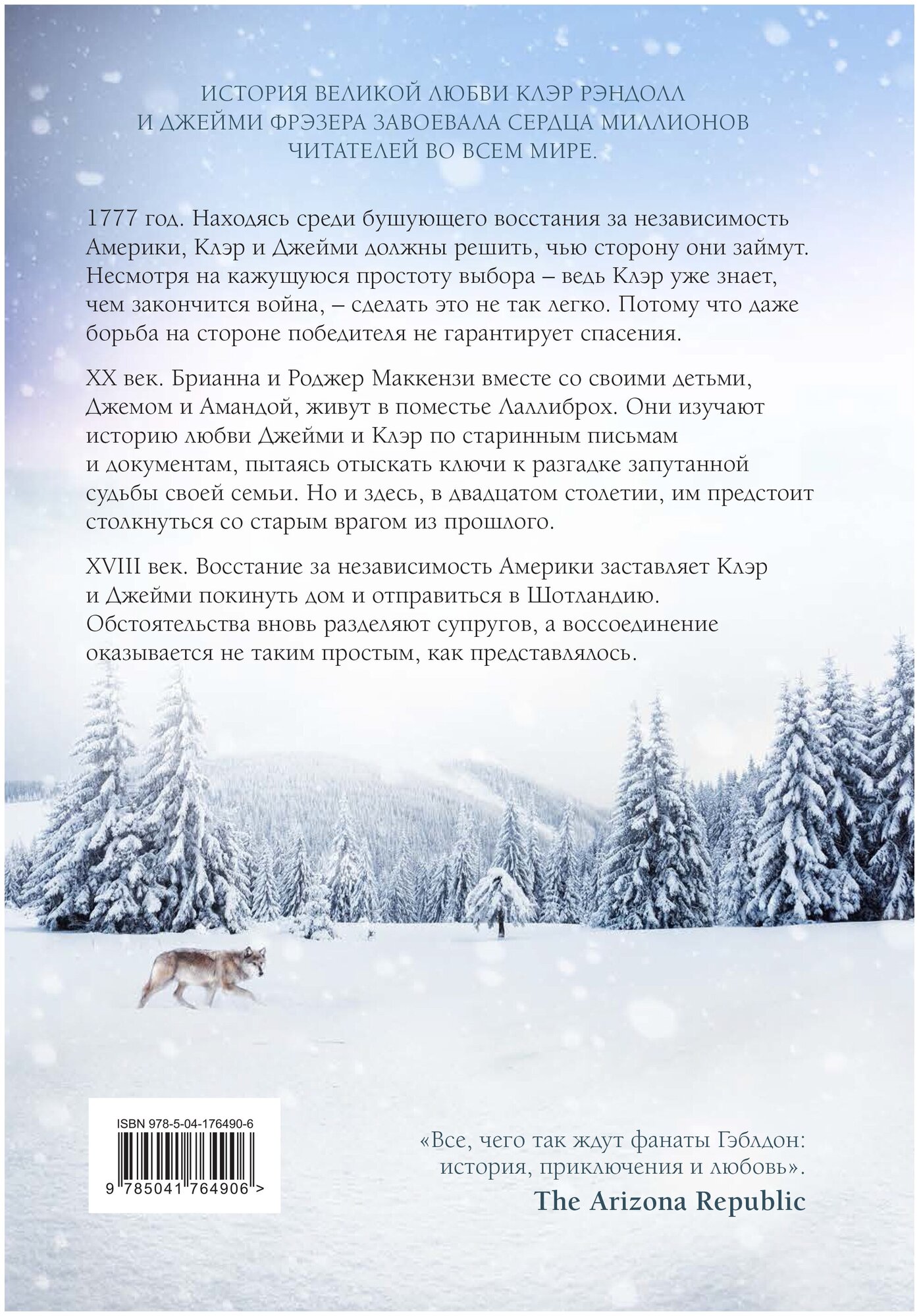 1777 год. Находясь среди бушующего восстания за независимость Америки, Клэр и Джейми должны решить, чью сторону они займут. Несмотря на кажущуюся простоту выбора - ведь Клэр уже знает, чем закончится война, - сделать это не так легко. Потому что даже борьба на стороне победителя не гарантирует спасения.