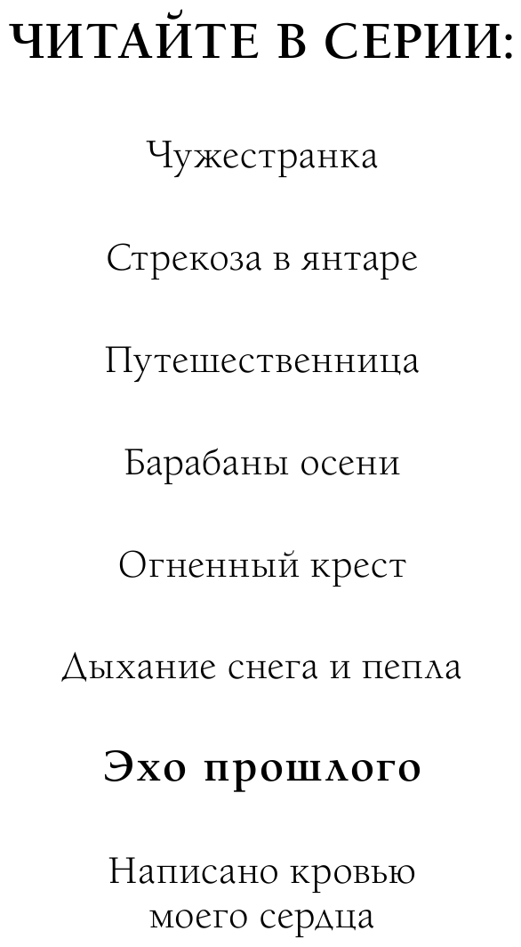 Книга: Эхо прошлого (Гэблдон Диана , Метлицкая И.А. (переводчик), Парахневич Е.В. (переводчик), Сафронова А.С. (переводчик)); Эксмо, 2023