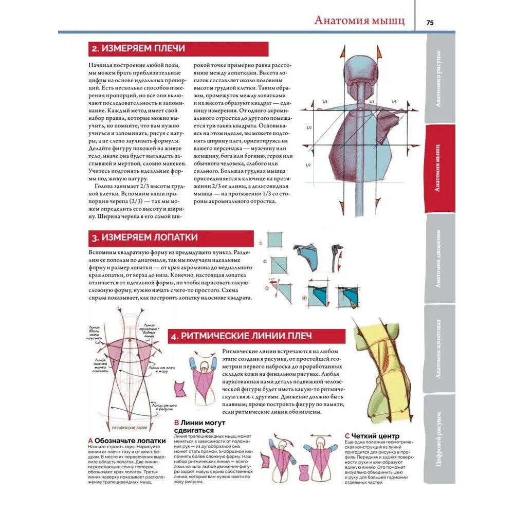 У меня всегда были огромные проблемы с анатомическим построением рисунка людей, не говоря уже о животных, где лошадь и собака выглядели практически одинаково. Но эта книга по-настоящему помогает понять, как выстраивать оси, сохранять пропорции и т.д. По началу книга мне не понравилась из-за своего дизайна, но это очень субъективное мнение, а вот сами уроки очень подробные и понятные. Мне нравится, что здесь изобилие схем и иллюстраций, а не пустого текста.