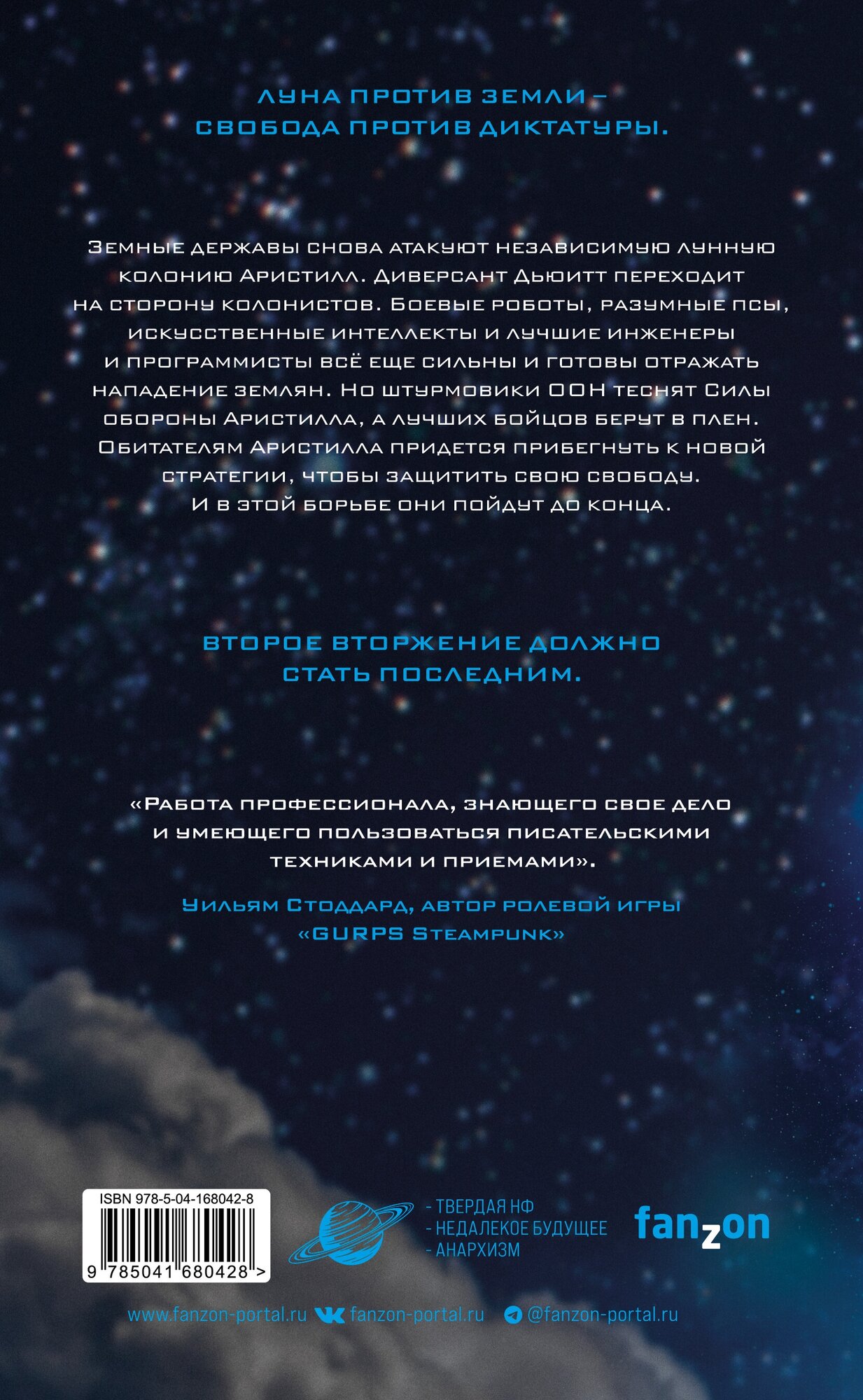 Вторая книга цикла \"Аристилл\" Коркорана, и на мой взгляд, художественно написана получше оригинала. Темп повестования быстрый, что хорошо для чтения, считываются отсылки на Хайлайна и других авторов, писавших в жанре либертарианской фантастики. Вообще, цикл очень политизированный, отсюда попытки морализаторства автора (немного напрягают) и даже поучения, как надо и как правильно, хотя для себя я так и не вынес, в чем по сути моральное преимущество колонистов над землянами. Автору все понятно, но объяснение для читателей (даже таких лояльных как я) показалось несколько плосковатым, не самым реалистичным и натянутым. За не очень убедительные сюжетные повороты, а также неравномерное развитие персонажей, ставлю 3,5 из 5.