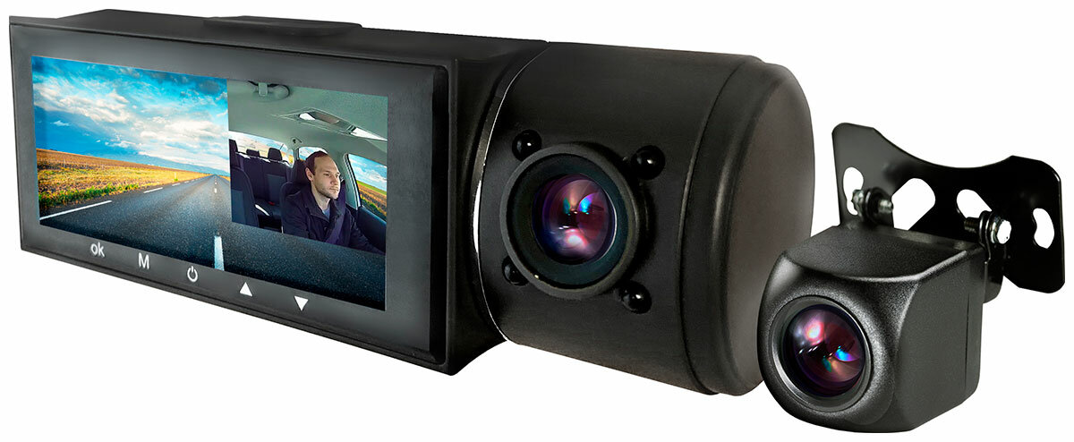 Цена, три камеры, три канала записи, у задней камеры похоже честный HD, пока работает.