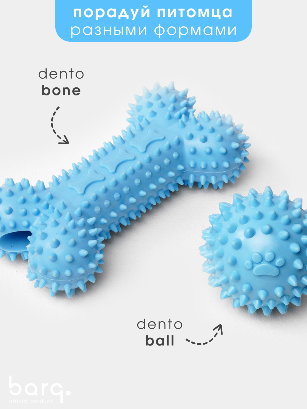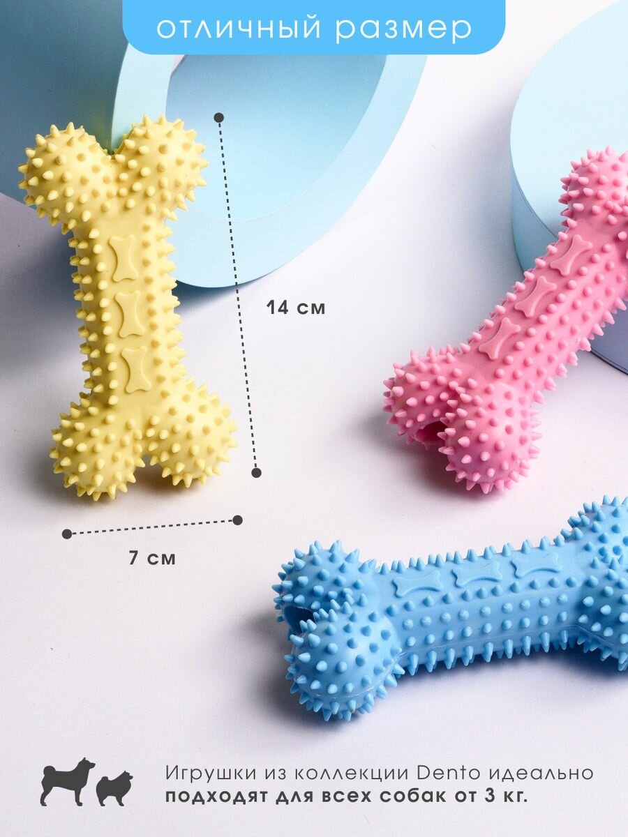Линейка игрушек Dento имеет пупырчатую поверхность, за счет чего при игре у Вашего питомца массируются десны и чистятся зубы.