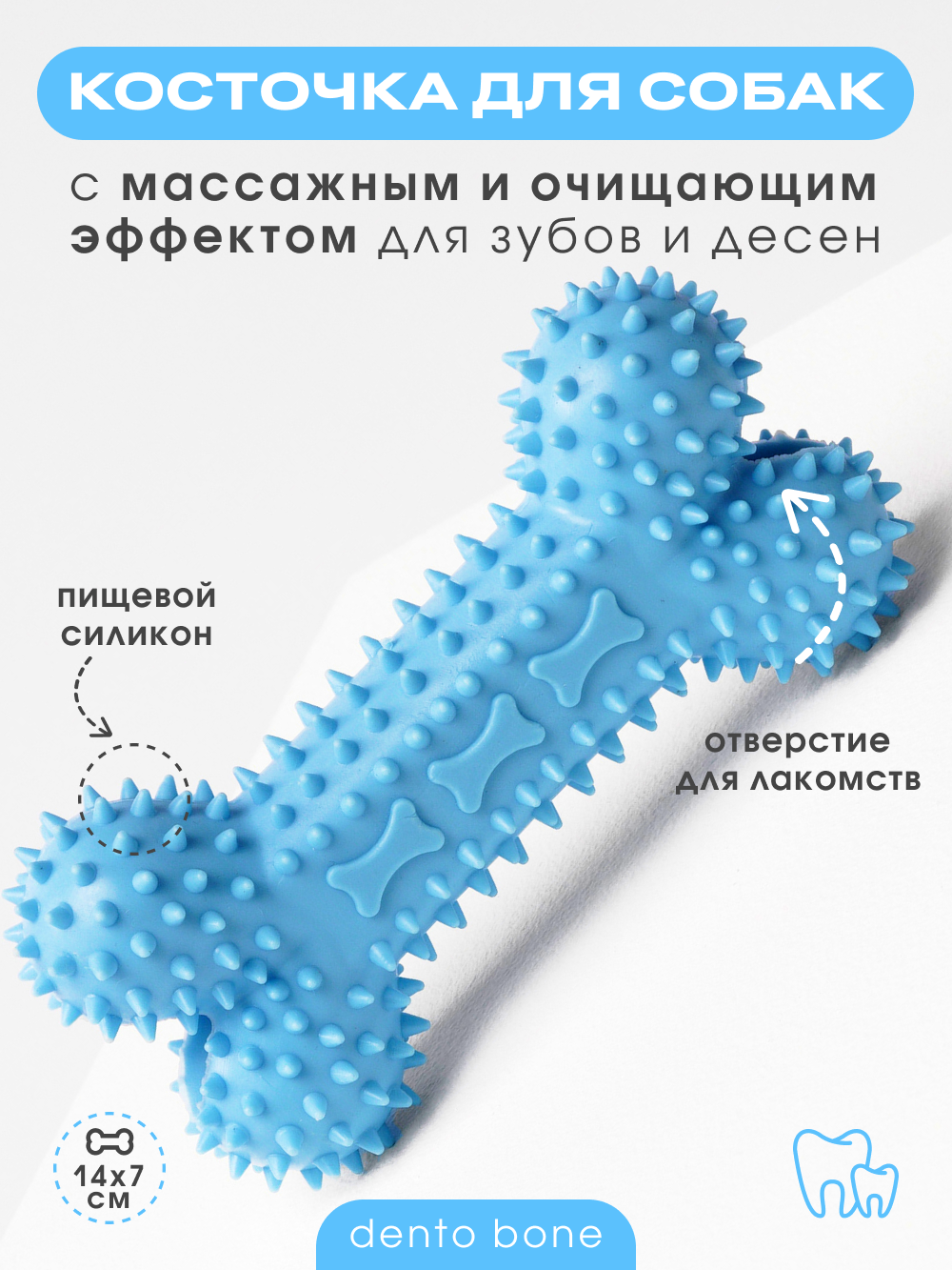 Косточка Dento Bone также имеет отверстие внутри для вкусняшек. Поместите внутрь мягкий паштет или что-нибудь вкусное, и собака будет играть с косточкой еще активнее.