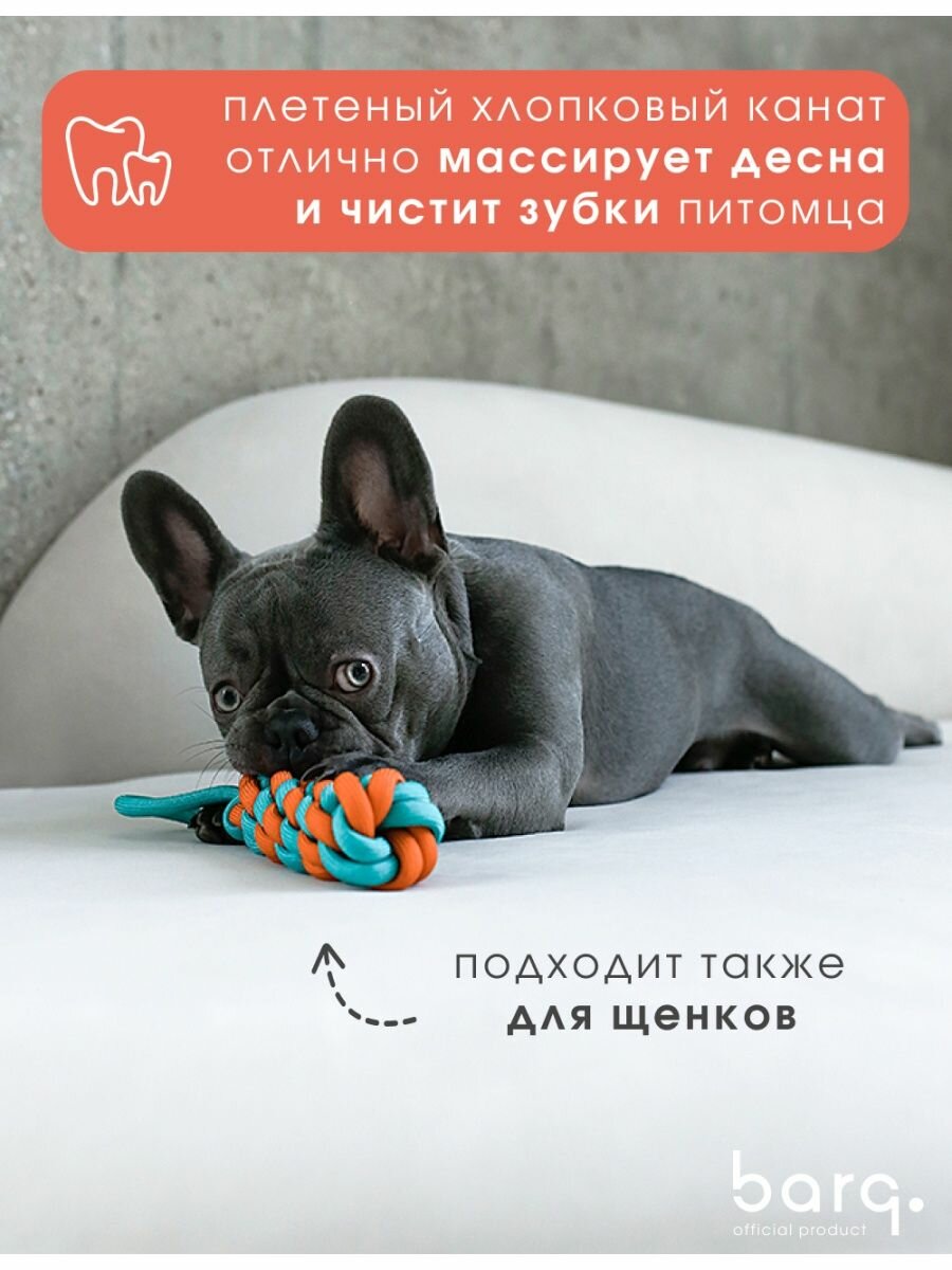Игрушка для собак Cordo Ball представляет собой плетеный мячик с удобной петлей. Каждый Cordo Ball изготавливается вручную из износостойкого 100% хлопка. Как и все дизайнерские товары для животных BARQ, игрушка Cordo Ball изготовлена из высококачественных материалов, рассчитанных на долгий срок службы. Подходит для щенкам, у которых только режутся зубы, так и для взрослых собак. Мяч для собак Cordo Ball также идеально подходит для метания, поэтому его также можно использовать для тренировки апорта.Важно: игрушка-веревка Nodo прочная, но не нерушимая. Поэтому всегда контролируйте свою собаку, играя с этой игрушкой.