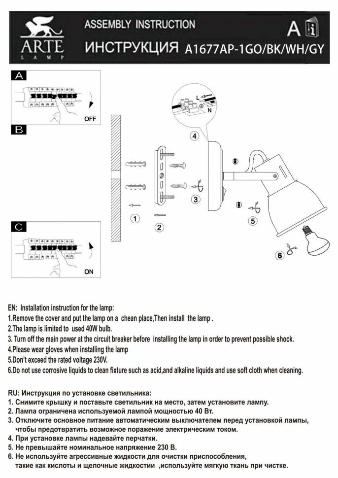| Максимальная допустимая мощность лампы (Вт) | 40 |