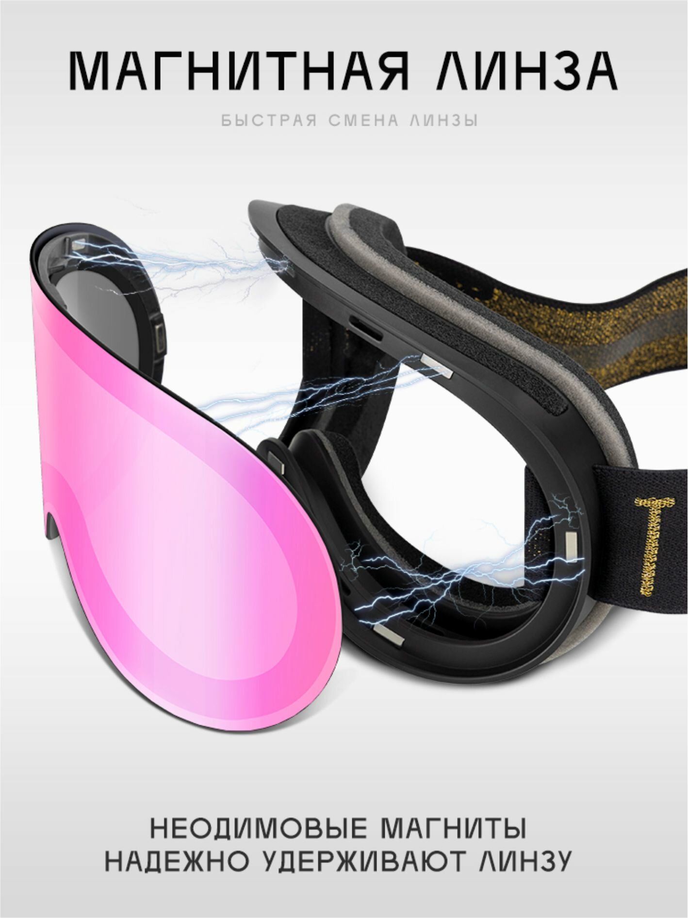 Сферическая линза на магнитах, которую очень легко сменять в любую минуту, большой обзор и 1 дополнительная линза в комплекте, благодаря чему в любую погоду во время спуска вы сможете контролировать любые кочки и держать ситуацию под контролем.