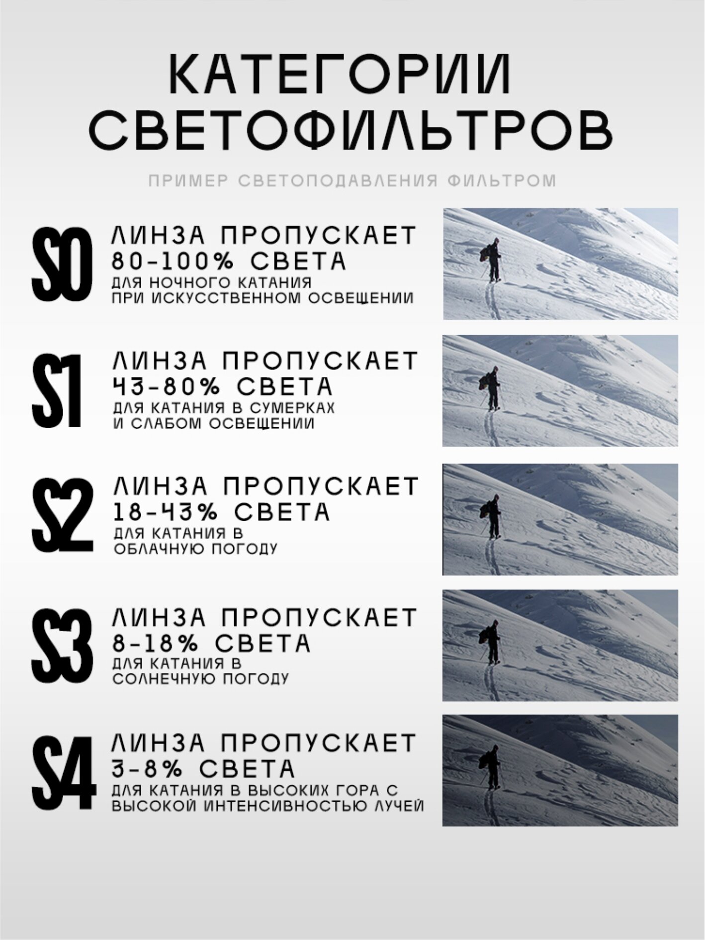 - 2 двойные линзы в комплекте: для пасмурной погоды, для гор