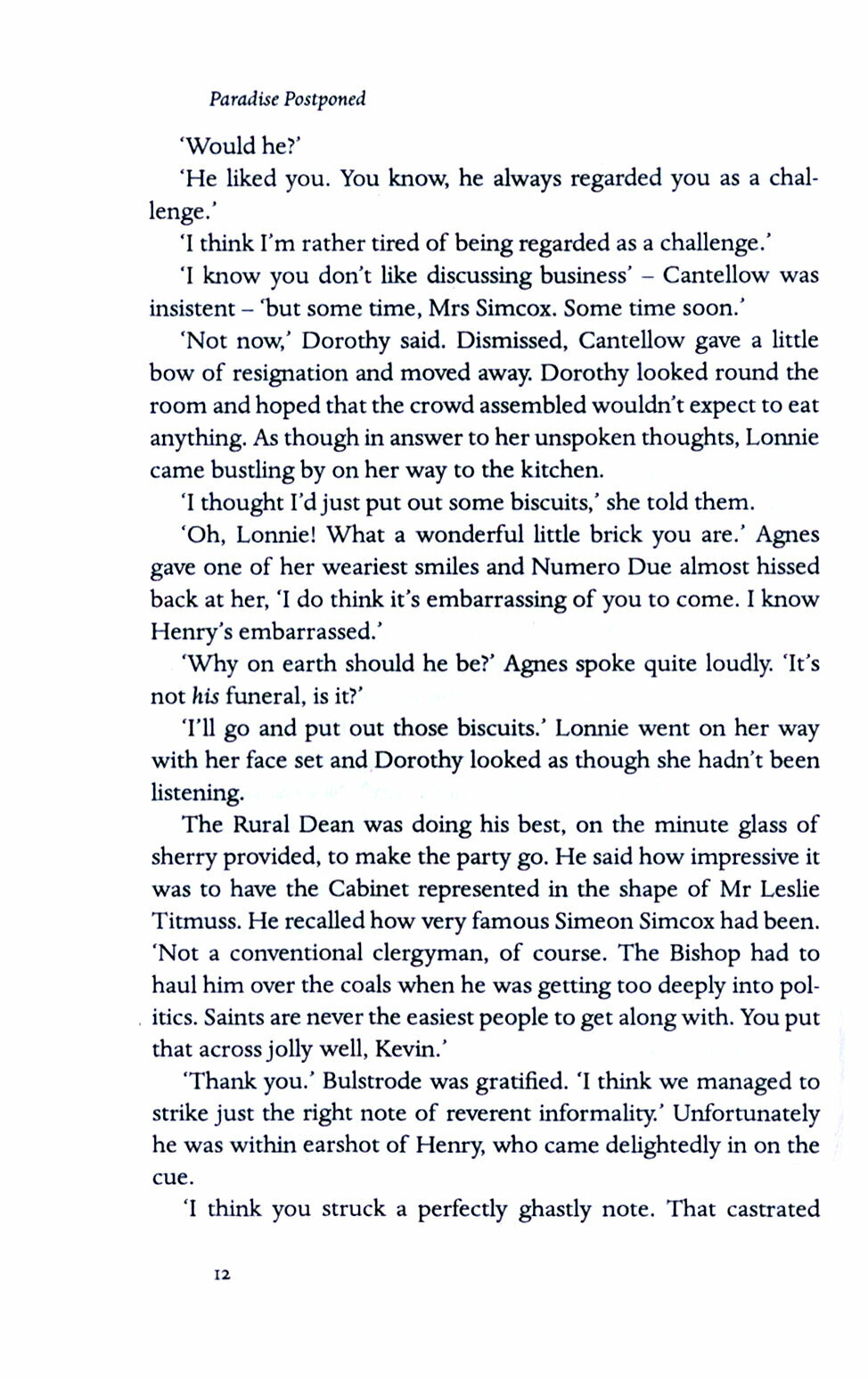 An exquisitely drawn saga of ancient rivalries and class struggles, featuring a glorious cast of characters, Paradise Postponed is a delicious portrait of English country life by a master satirist.