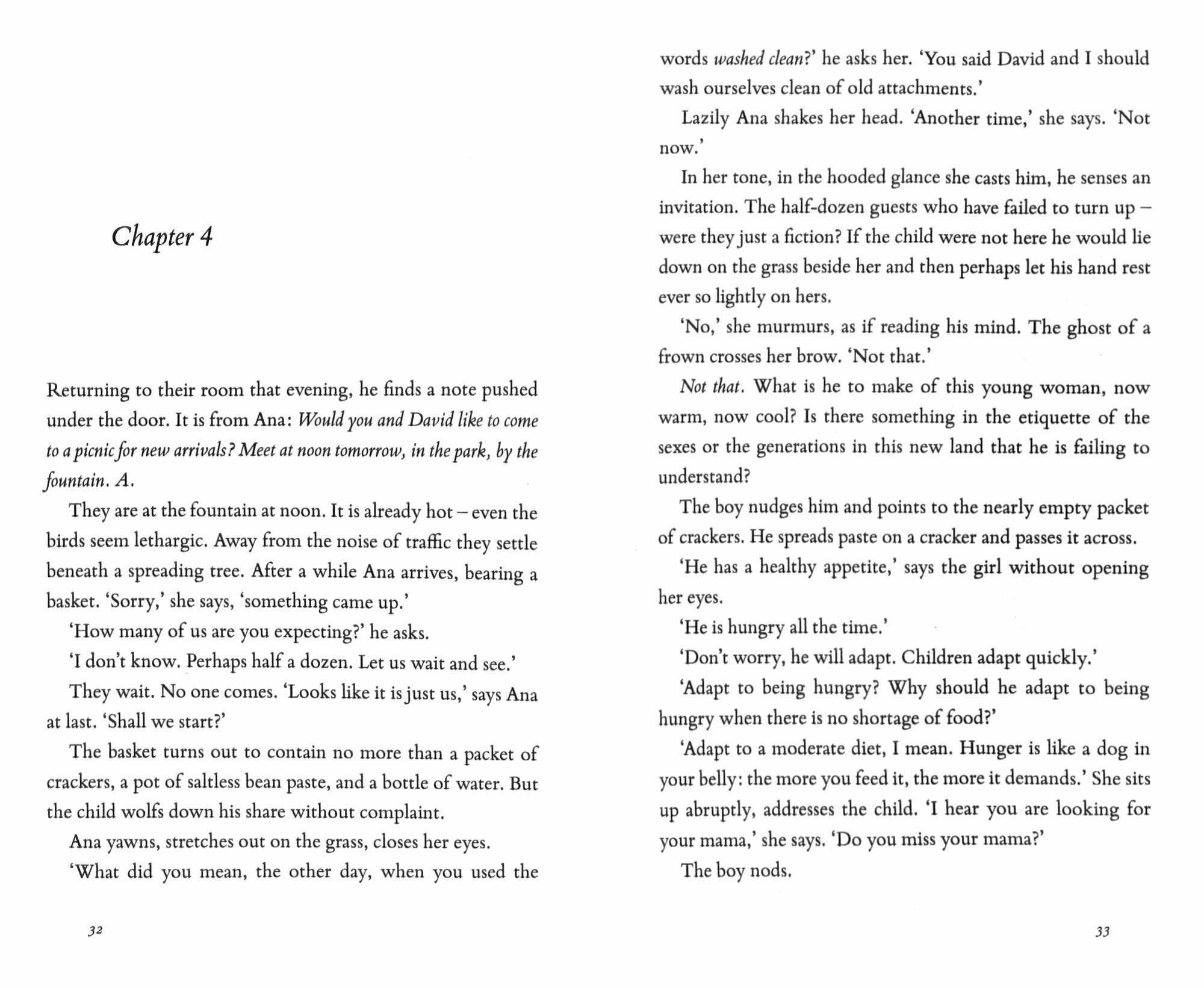 Knowing nothing of their surroundings, nor the language or customs, they are determined to find David's mother. Though the boy has no memory of her, Simon is certain he will recognise her at first sight. 'But after we find her,' David asks, 'what are we here for?'