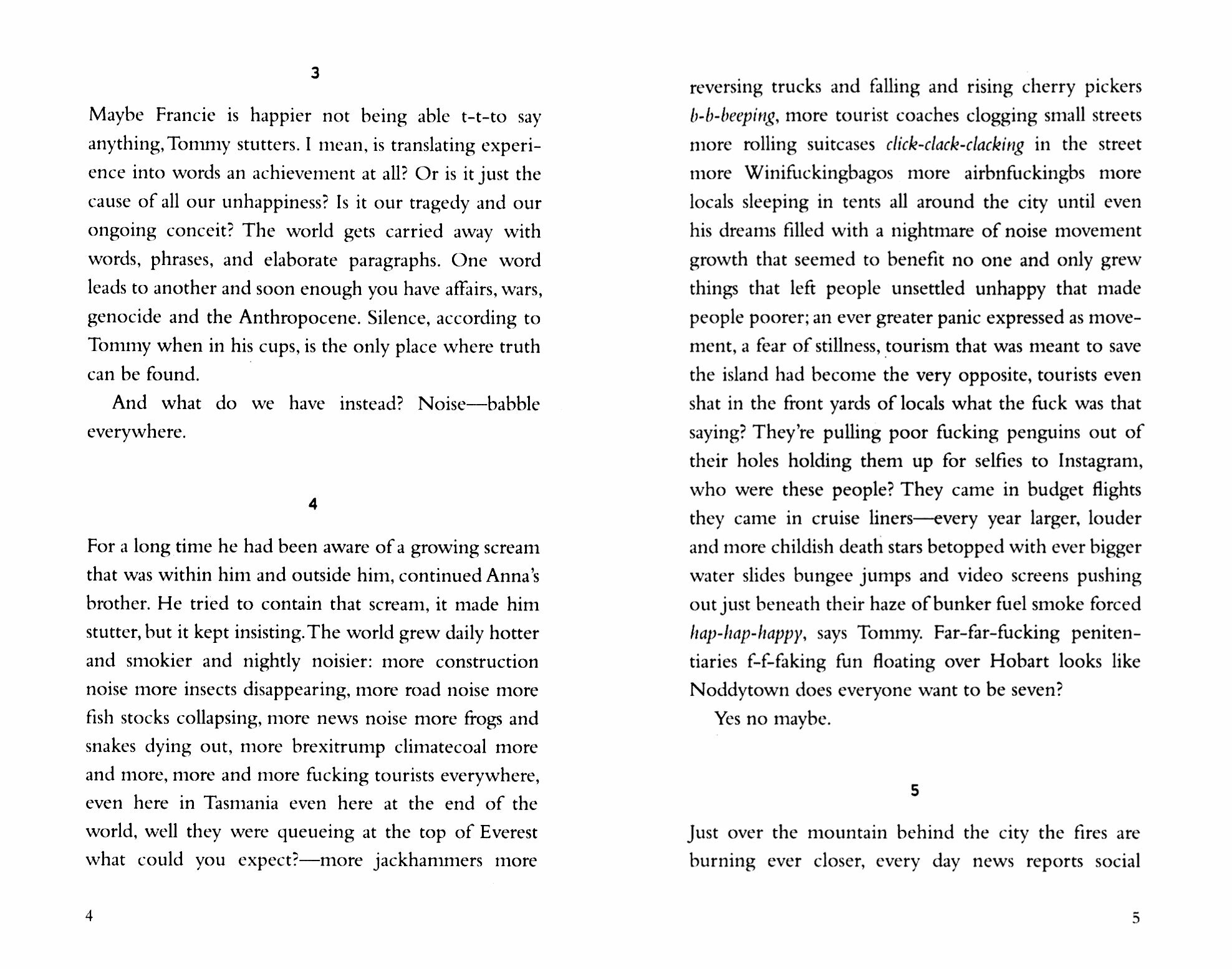 When Anna's finger vanishes and a few months later her knee disappears, Anna too feels the pull of the window. She begins to see that all around her others are similarly vanishing, but no one else notices. All Anna can do is keep her mother alive. But the window keeps opening wider, taking Anna and the reader ever deeper into a strangely beautiful novel about hope, love and orange-bellied parrots.
