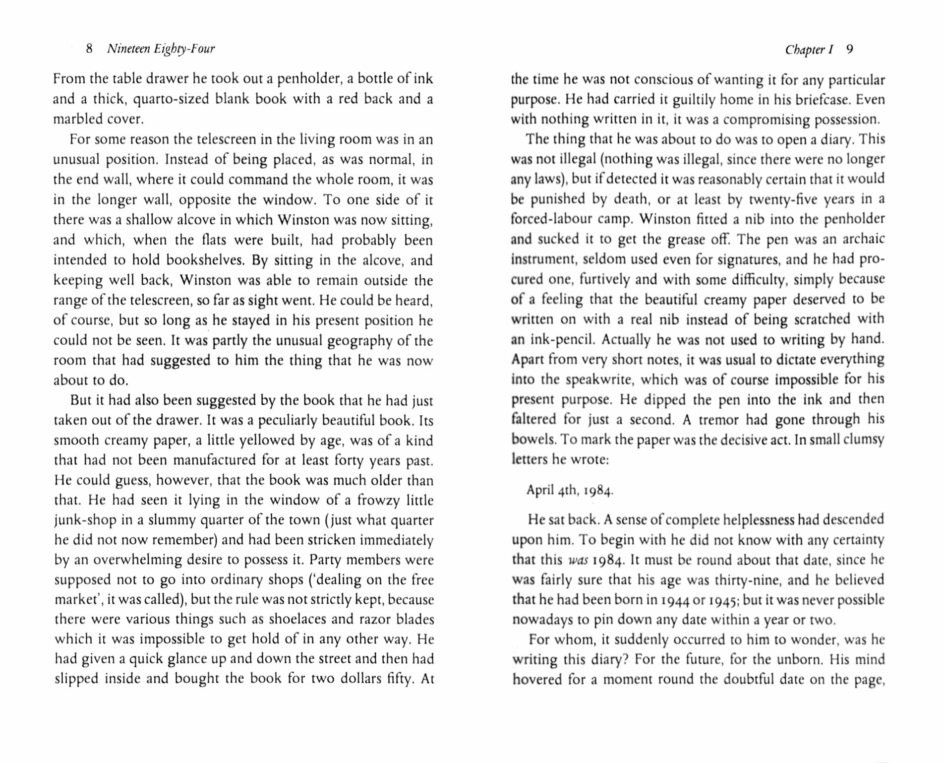 Winston Smith works for the Ministry of Truth in London, chief city of Airstrip One. Big Brother stares out from every poster, the Thought Police uncover every act of betrayal. When Winston finds love with Julia, he discovers that life does not have to be dull and deadening, and awakens to new possibilities. Despite the police helicopters that hover and circle overhead, Winston and Julia begin to question the Party; they are drawn towards conspiracy. Yet Big Brother will not tolerate dissent - even in the mind. For those with original thoughts they invented Room 101…