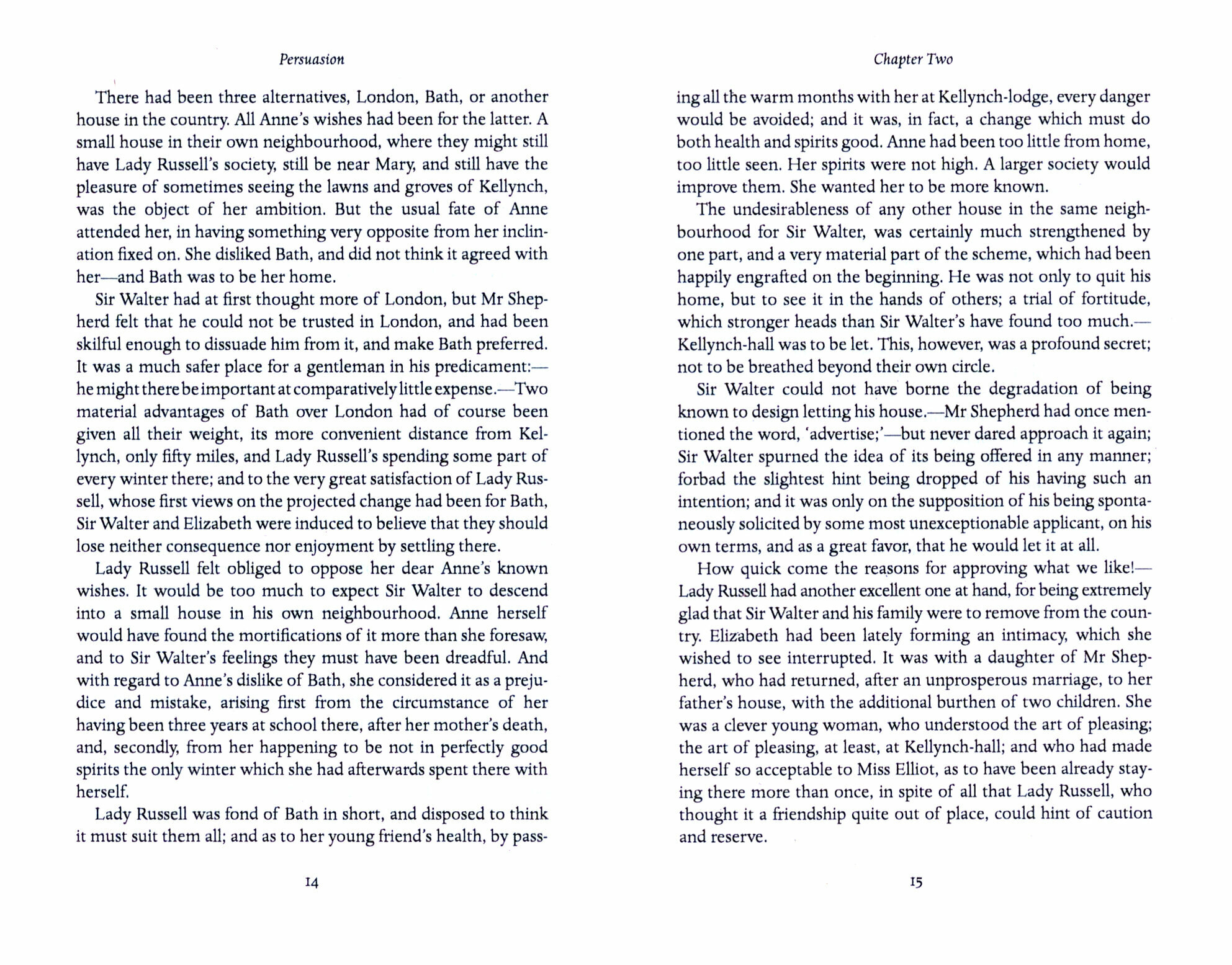Persuasion, Jane Austen's last novel, is a moving, masterly and elegiac love story tinged with the heartache of missed opportunities. It tells the story of Anne Elliot, who, persuaded to break off her engagement to the man she loved because he was not successful enough, has never forgotten him. When he returns, he brings with him a tantalizing second chance of happiness...