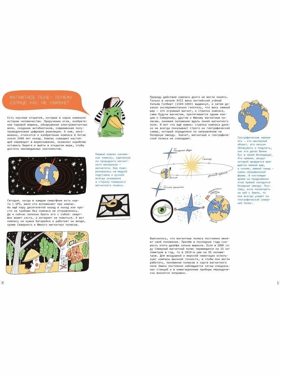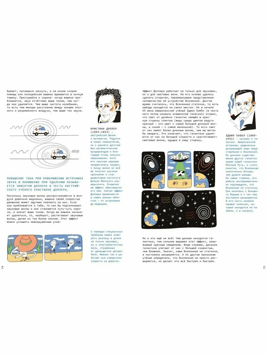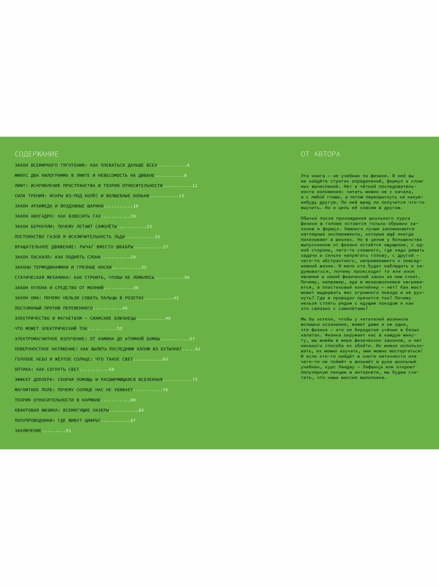 Зачем нам физика, если физиками мы быть всё равно не собираемся? Для чего нам забивать голову сложными определениями, замысловатыми формулами и запутанными объяснениями? Как это вообще можно запомнить и уложить в голове? Сколько поколений школьников задавались этими вопросами. Как много выпускников до сих пор с ужасом и отвращением вспоминают и школьные уроки физики, и домашние задания. У скольких в голове остались только разрозненные названия законов и отрывки определений. Понять, что физика - вовсе не так сложно, зато невероятно интересно и даже захватывающе, поможет эта книга. Здесь вы не встретите ни задач, ни формул, зато найдёте простое и понятное объяснение законов и примеры того, как эти законы работают в явлениях и предметах, которые окружают нас повсюду. Почему зимой трещины в асфальте становятся ямами? Как работает GPS-навигатор? Почему на коньках можно ездить очень быстро, а усилий затрачивать совсем немного? Как мост выдерживает вес грузового поезда? Законы физики работают и в нашем теле: когда мы спим, ходим, плаваем, просто дышим. Знаете ли вы, что наши нервы и мозг работают благодаря электрическим импульсам? А задумывались ли, что у нас есть орган чувств, способный воспринимать электромагнитные волны? Знание физики помогает нам заботиться о собственной безопасности. Книга расскажет, почему, например, нельзя стоять на краю платформы, мимо которой проходят поезда, зачем ложиться на живот и ползти, если лёд под тобой затрещал или почему при любой работе с открытыми проводами нельзя прикасаться к двум проводам обеими руками. Все мы живём в мире физических законов, и нет никакого способа их обойти. Их можно изучать, их можно использовать и, конечно, ими невозможно не восторгаться! Так давайте сделаем это прямо сейчас!
