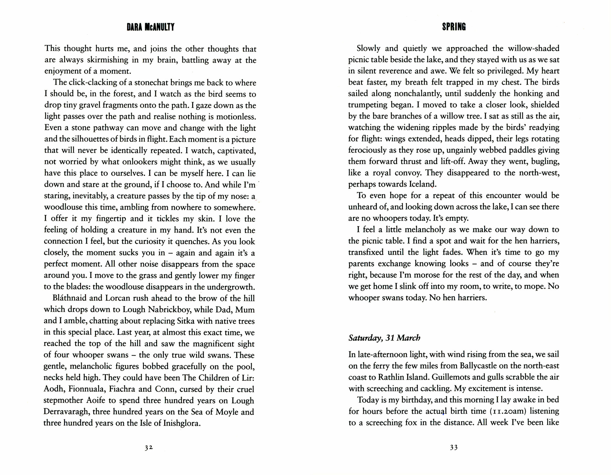 Shifting from intense darkness to light, recalling his sensory encounters in the wild - with blackbirds, whooper swans, red kites, hen harriers, frogs, dandelions, Irish hares and more - McAnulty reveals worlds we have neglected to see, in a stunning world of nature writing that is a future classic.