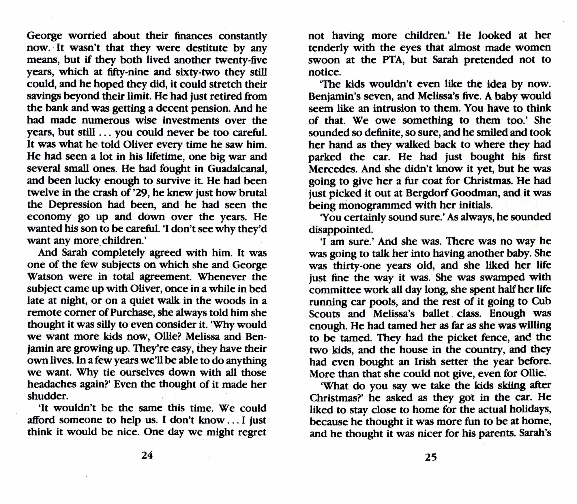Left alone, Oliver struggles to cope with raising his three children. Seventeen-year-old Benjamin rebels with disastrous consequences, while fifteen-year-old Melissa angrily turns against her father, and nine-year-old Sam, the 'baby', is too shaken to deal with his mother's abandonment.